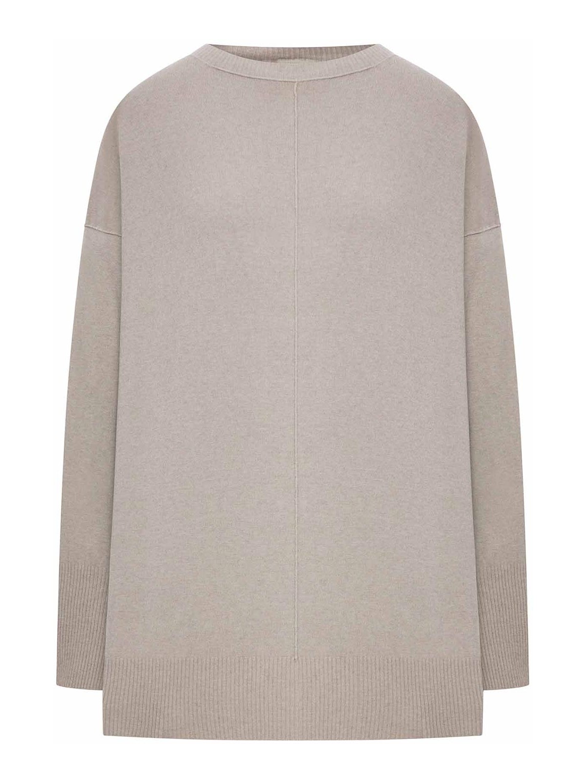 Rundhalsausschnitt, lange Ärmel, gerader Saum, leicht abgesenkte Schultern, Rippbündchen an Ärmeln und Saum, - Mischung, Farbe Stone