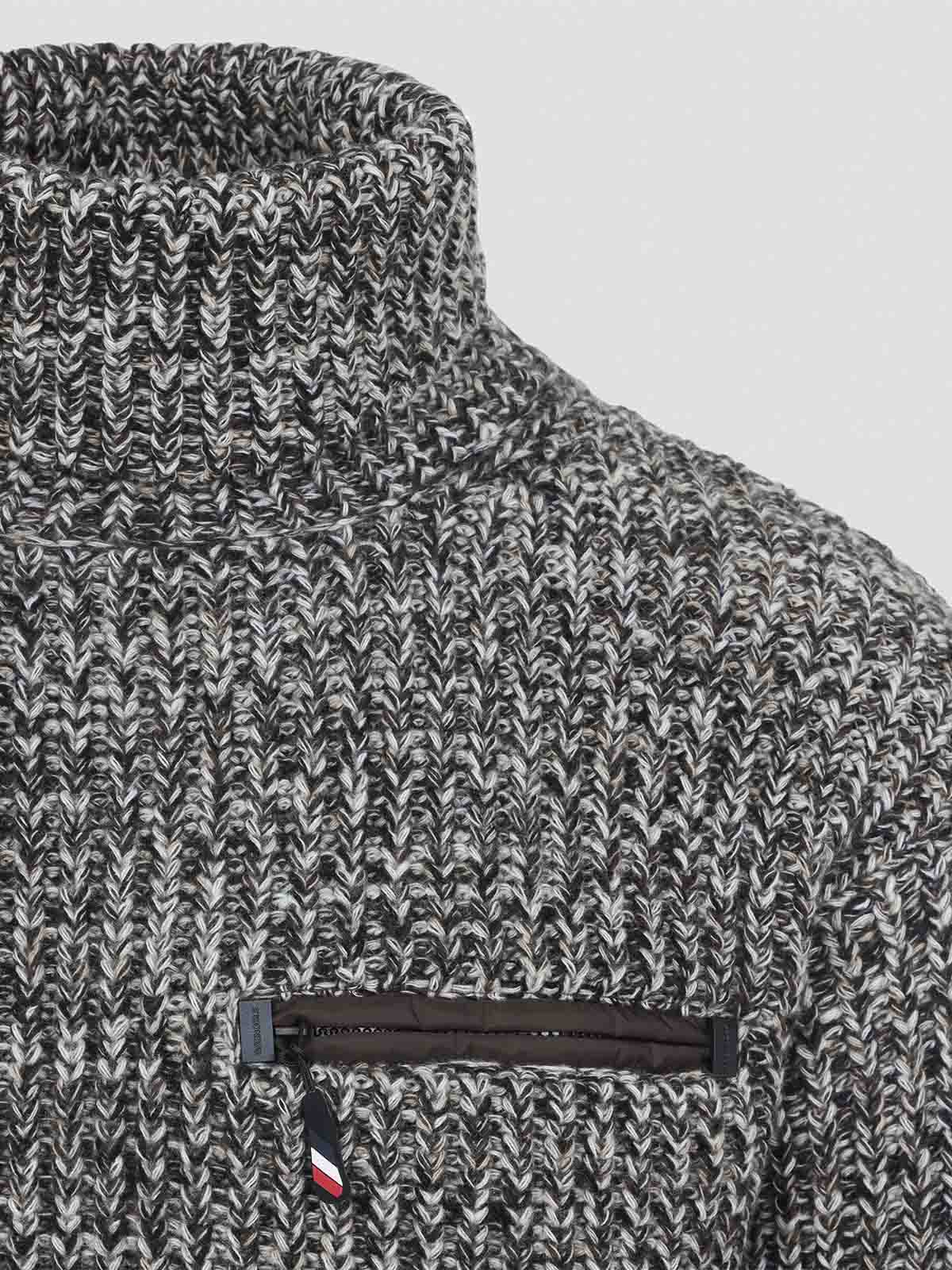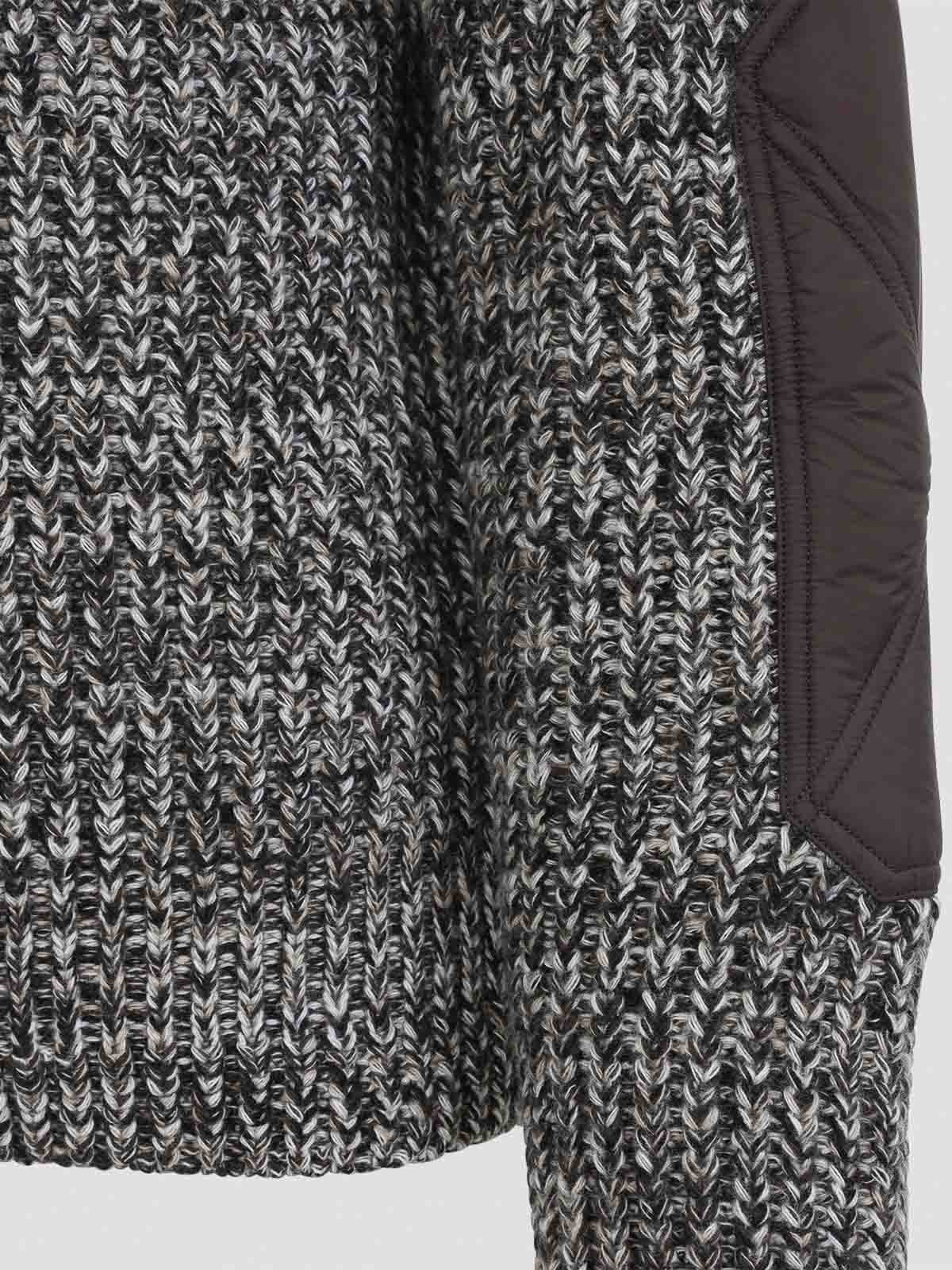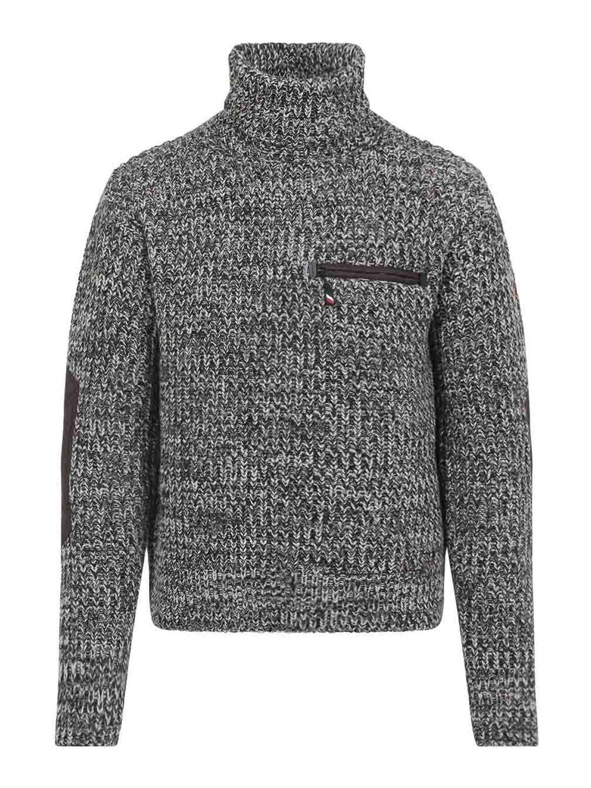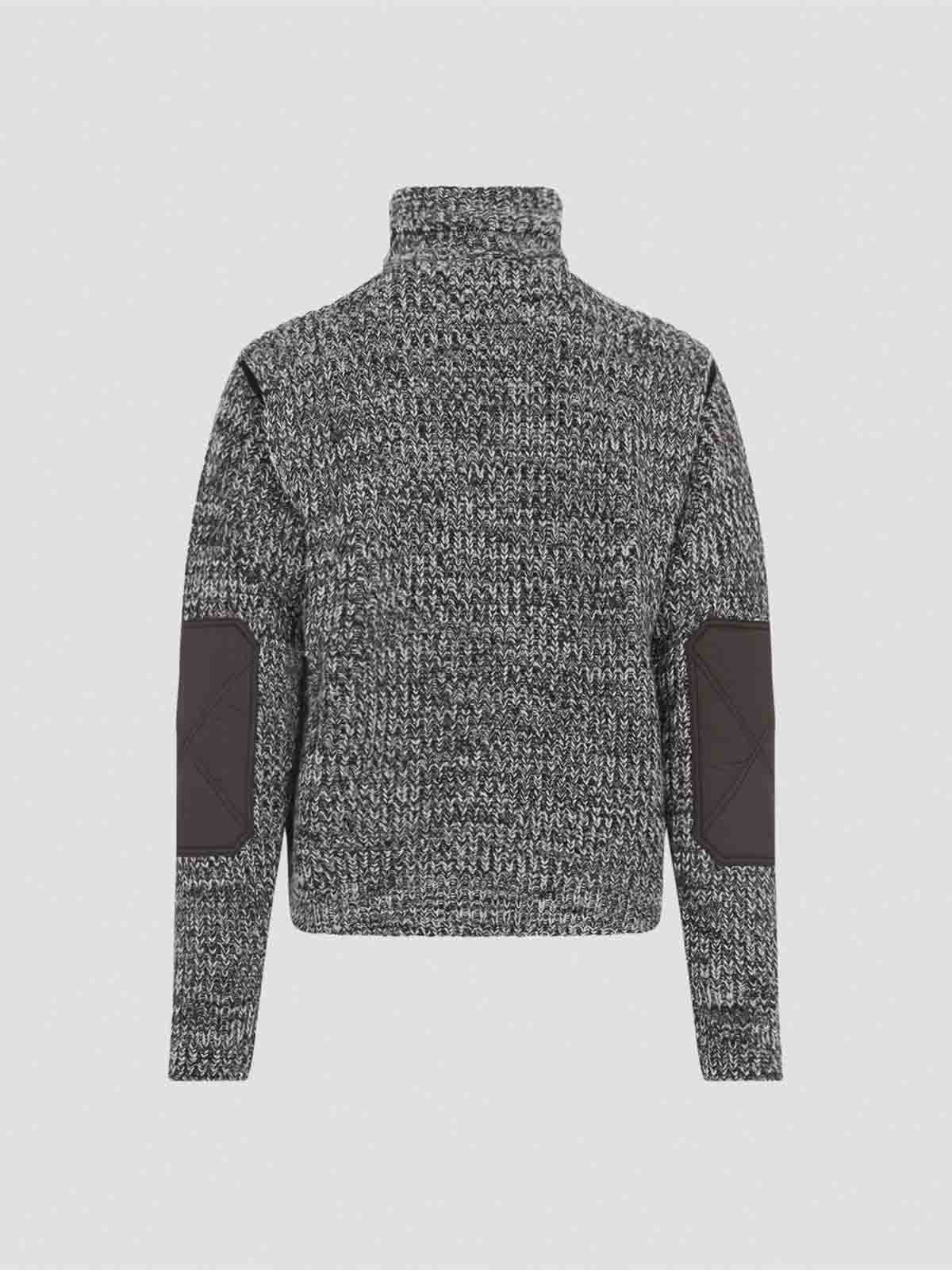 Moncler Grenoble, mittelbraunes T, Ausschnitt, Rollkragen, reiner Rollkragenpullover, Schildkröte, Hals, Brusttasche mit Reißverschluss, lange Ärmel, gepolsterter Patch an den Ellbogen, gerader Saum, Strickdesign