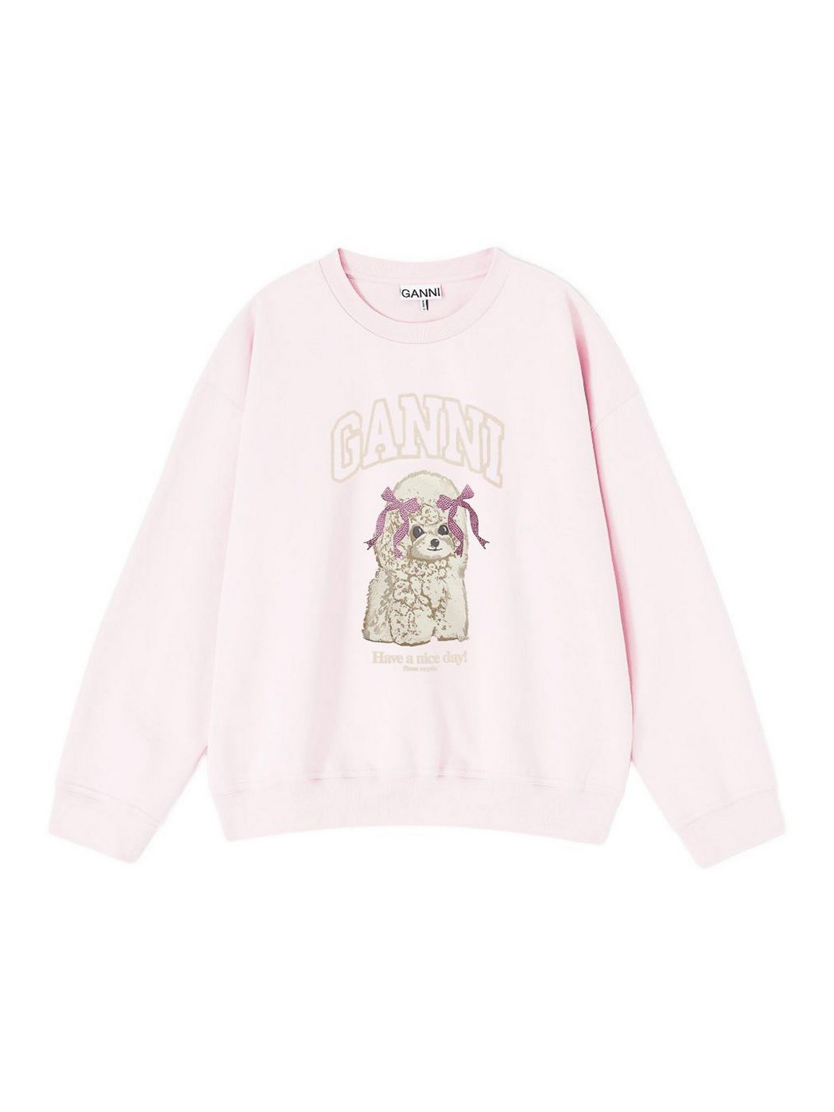 Rundhalsausschnitt mit hellrosafarbenem Grafikprint, lange Ärmel, gerippter Saum und Bündchen