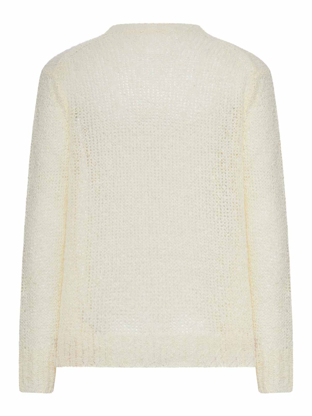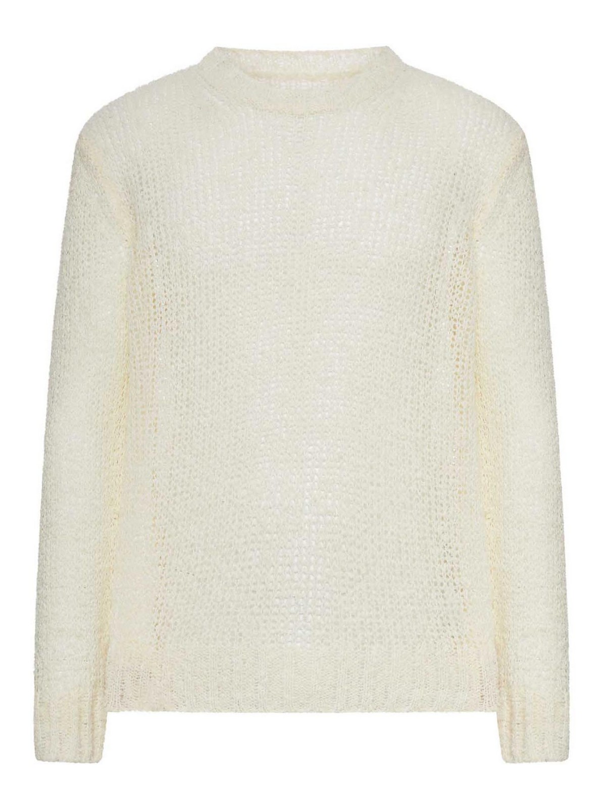 Rundhalsausschnitt, lange Ärmel, gerippter Kragen, Bündchen und Saum, offener Strick, reguläre Passform, Farbe: Eierschale