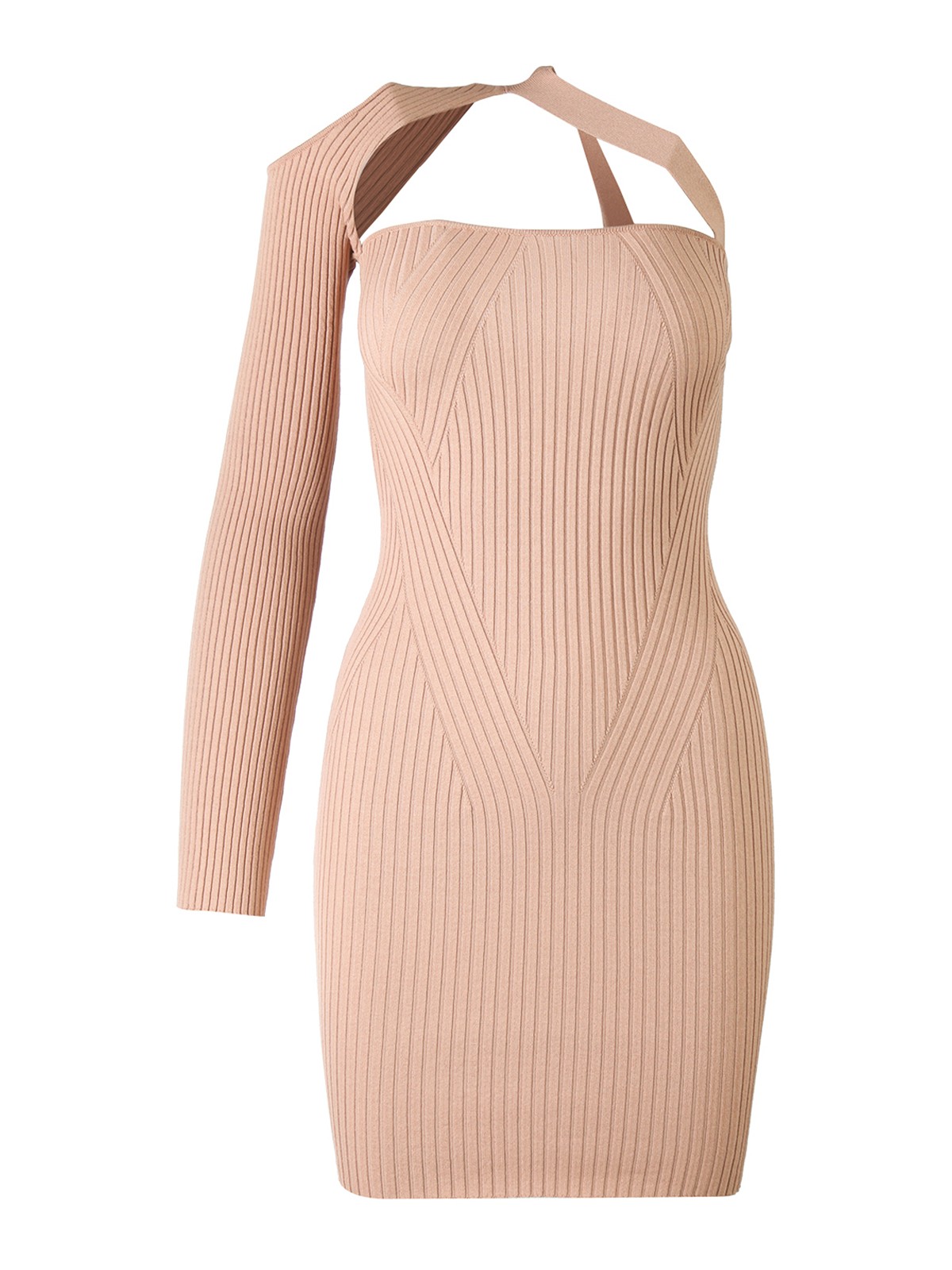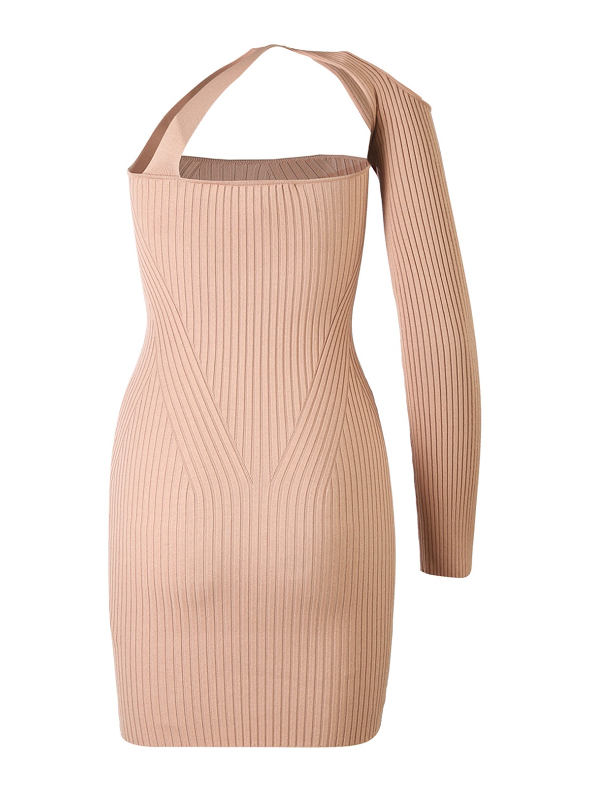 Asymmetrisches Mono-Schulterkleid aus geripptem Strick