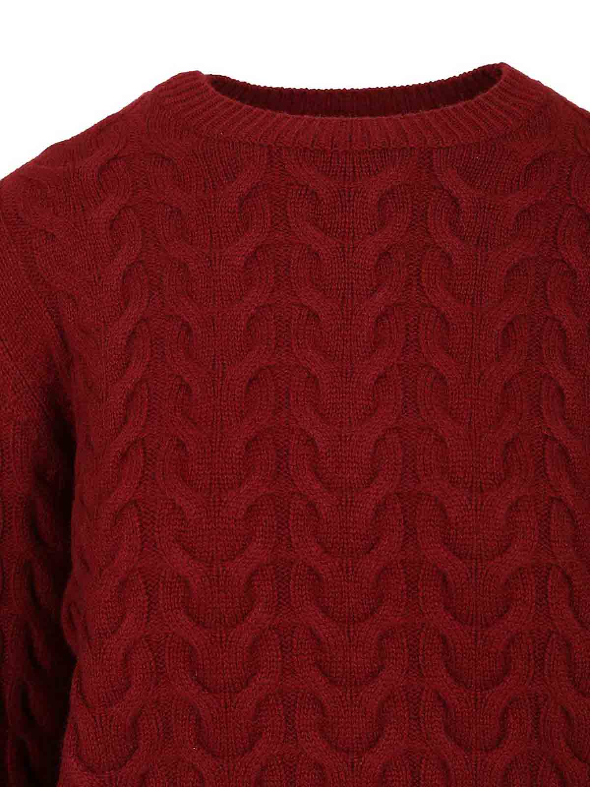 Max Mara: Strickpullover mit Rundhalsausschnitt - Rundhalspullover - Rot