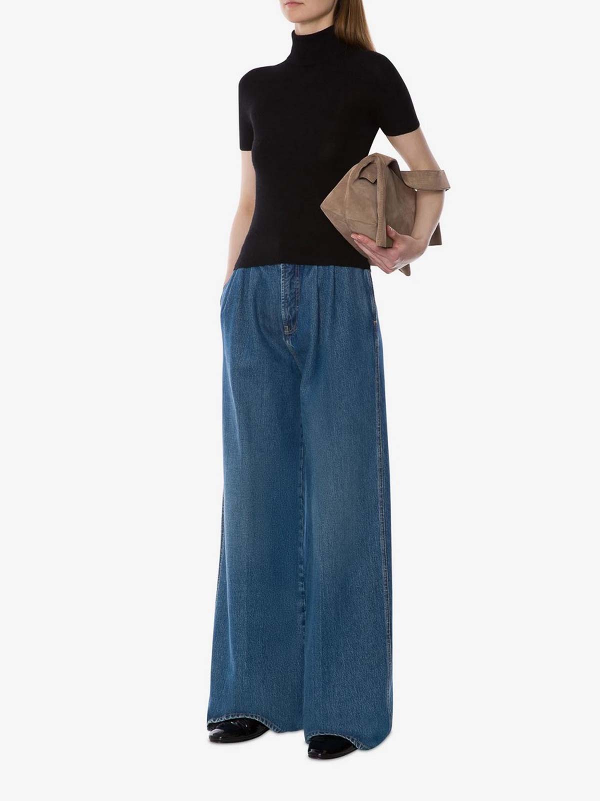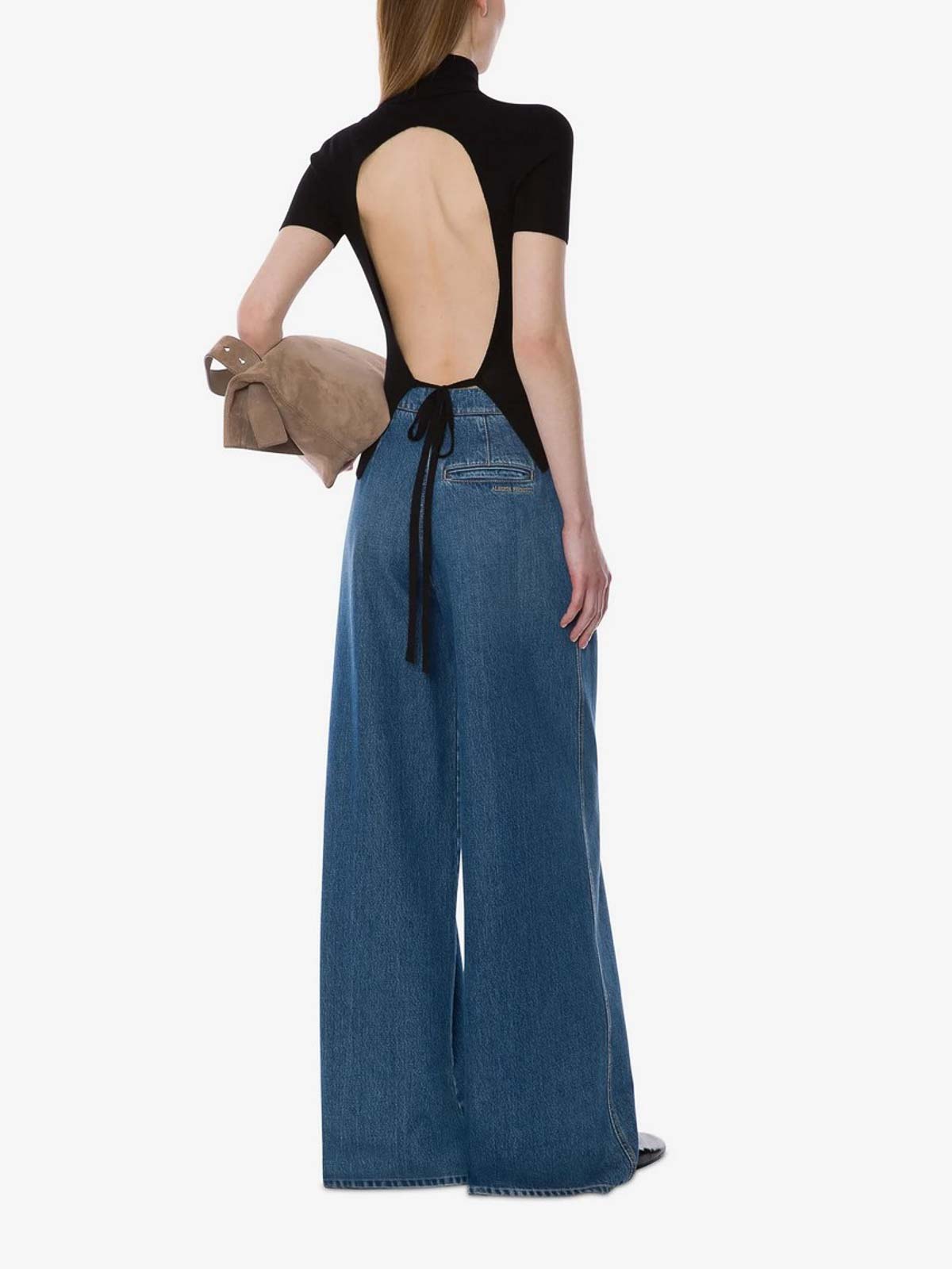 Alberta Ferretti Top aus Wolle und Cashmere mit offenem Rücken, Stehkragen und Schnürverschluss auf der Rückseite.