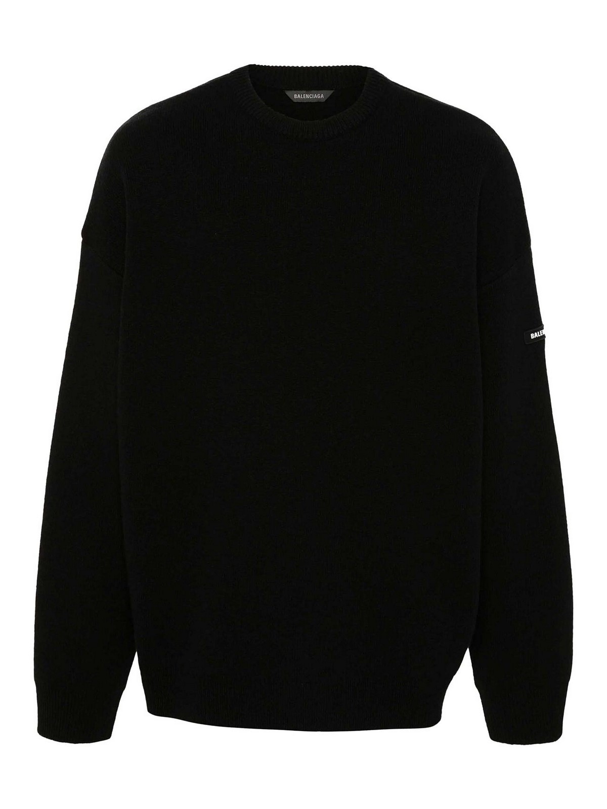 BALENCIAGA: Strickpullover mit Rundhalsausschnitt - Rundhalspullover - Schwarz
