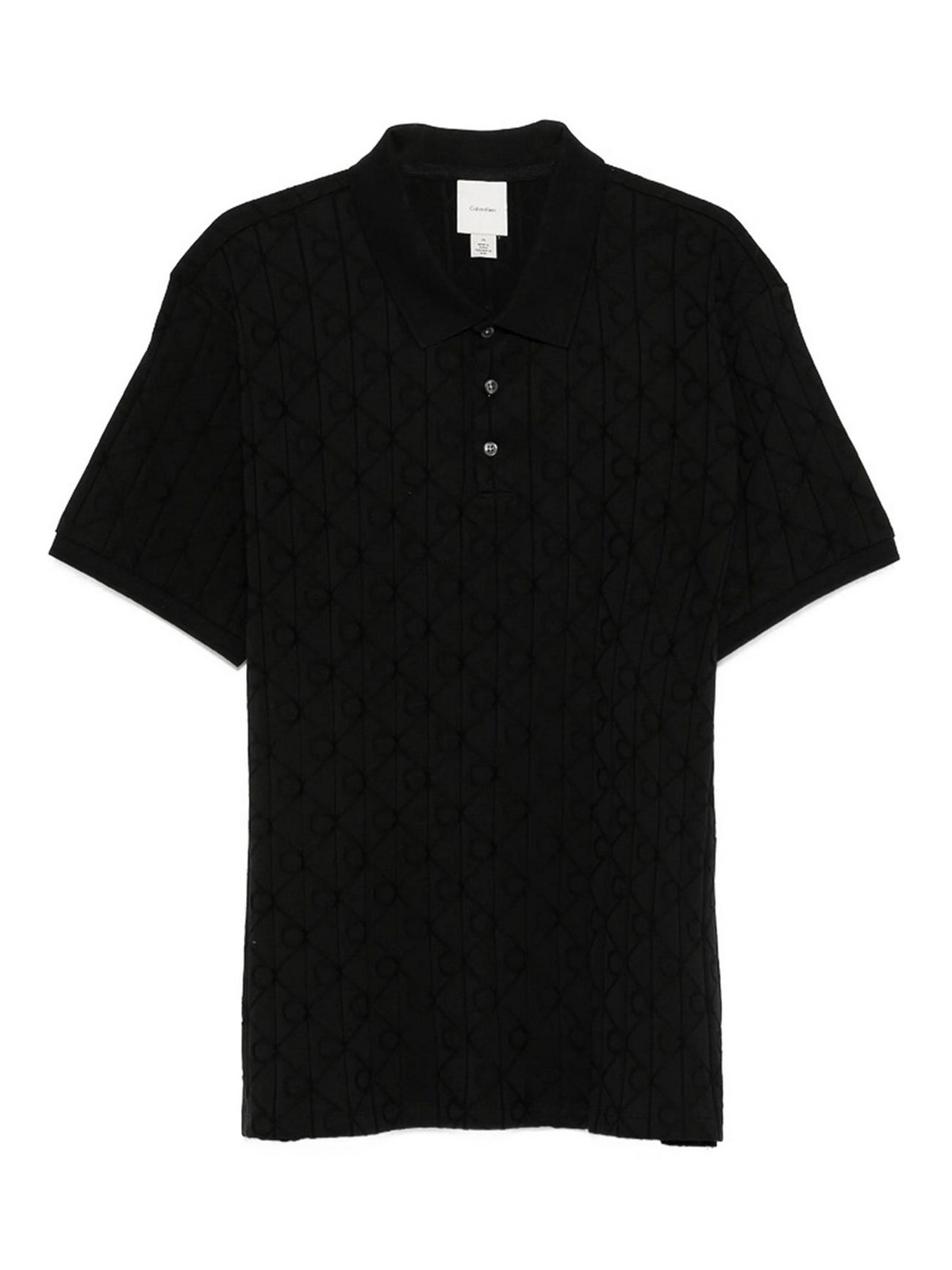Schwarzer Jacquard-Logo-Motiv, Knopfverschluss, kurze Ärmel