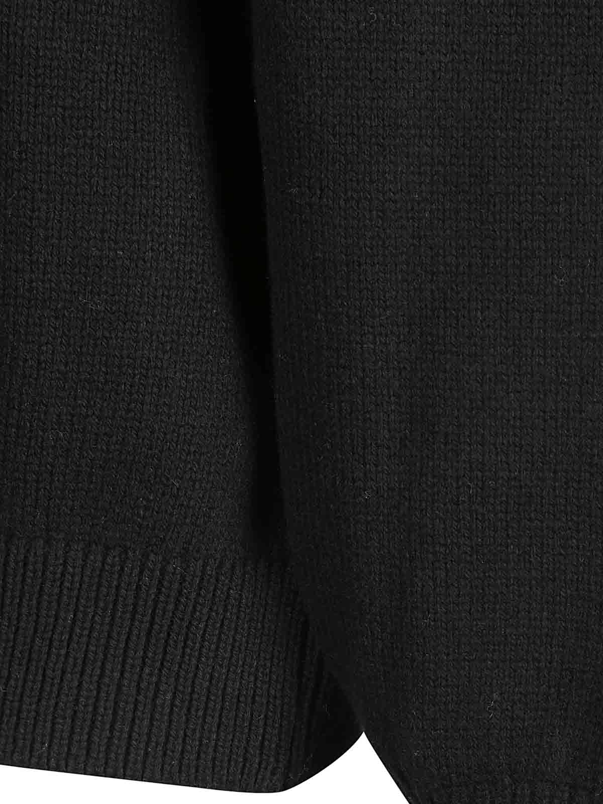 Schwarzer Pullover aus Merinowolle, Oversize-Passform, Rundhalsausschnitt, gerippter Saum.