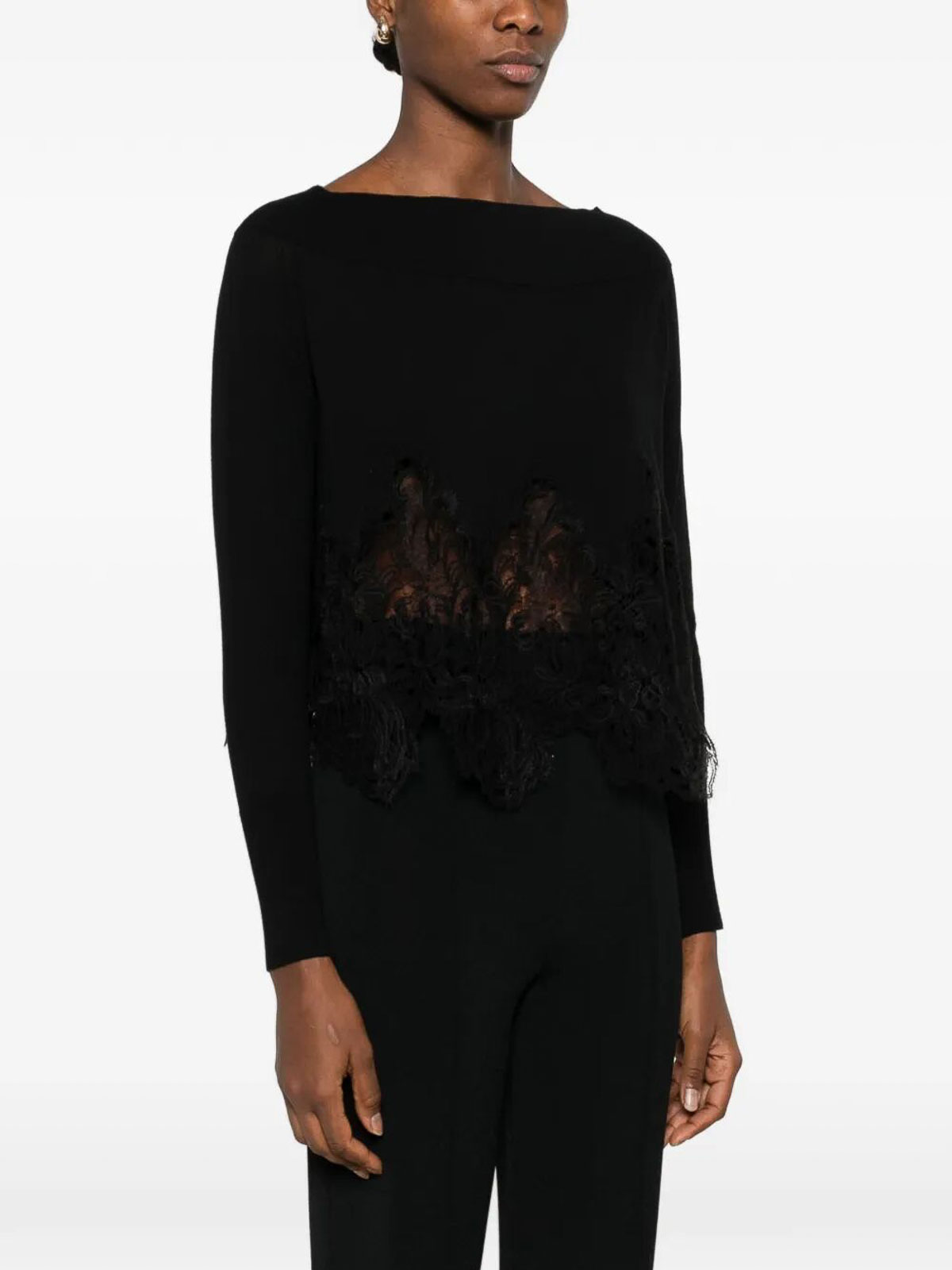 ERMANNO SCERVINO: Strickpullover mit Rundhalsausschnitt - Rundhalspullover - Schwarz