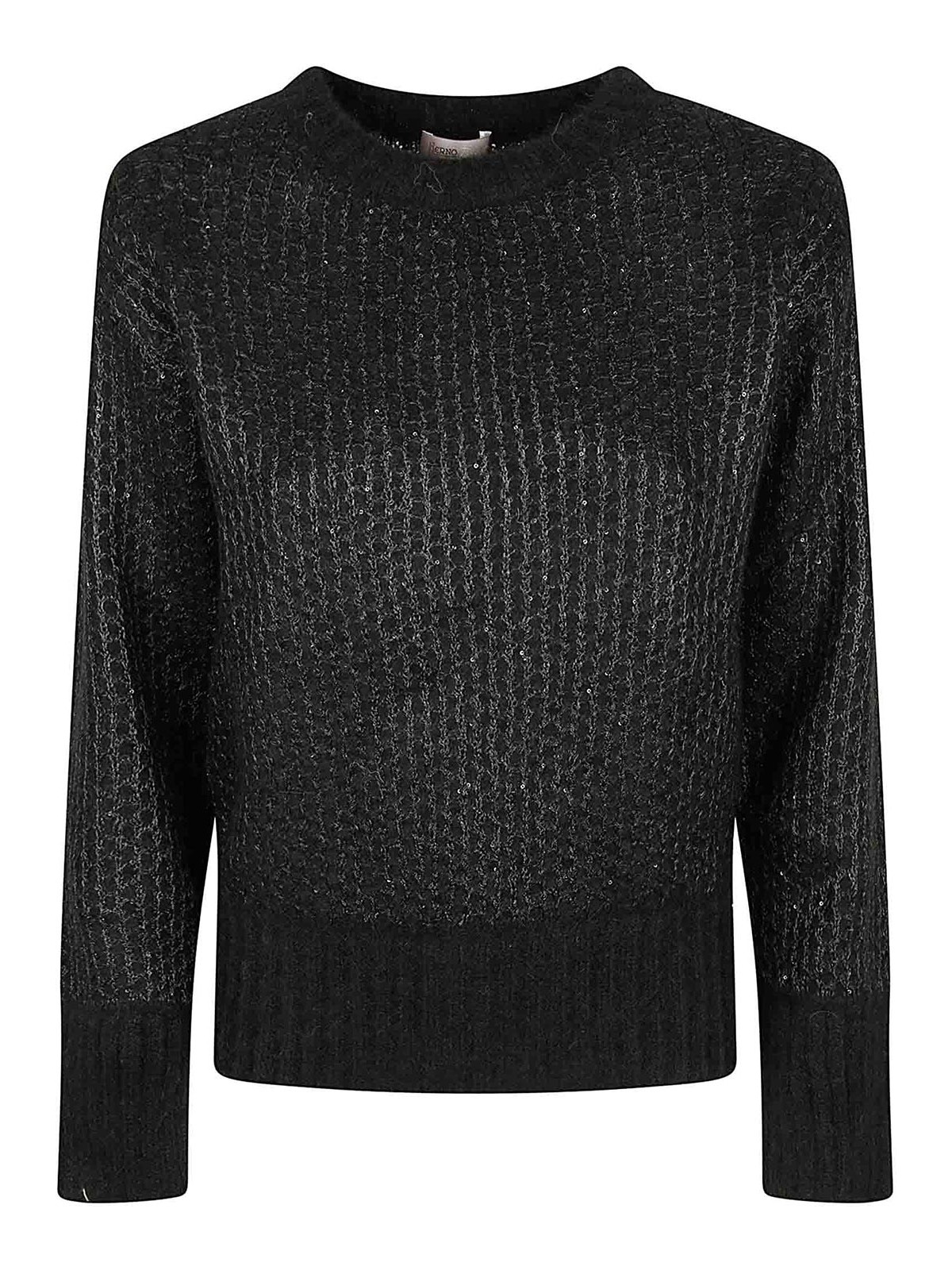 HERNO: Strickpullover mit Rundhalsausschnitt - Rundhalspullover - Schwarz