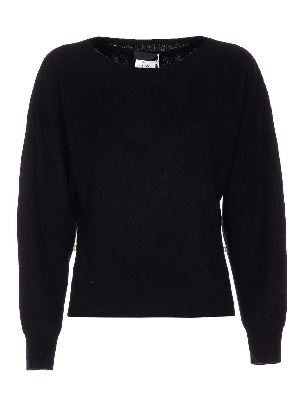 Liu Jo: Strickpullover mit Rundhalsausschnitt - Rundhalspullover - Schwarz