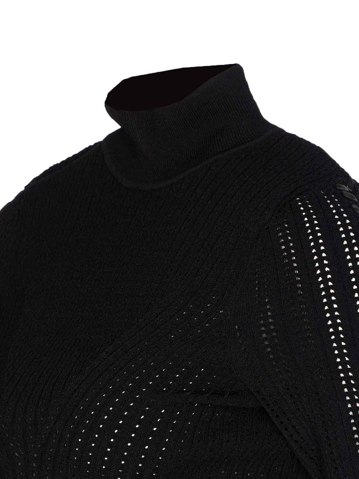 Liu Jo schwarzer Pullover, eng anliegendes Modell, Stehkragen, lange Ärmel, am Rücken ausgeschnitten, Strickmodell,