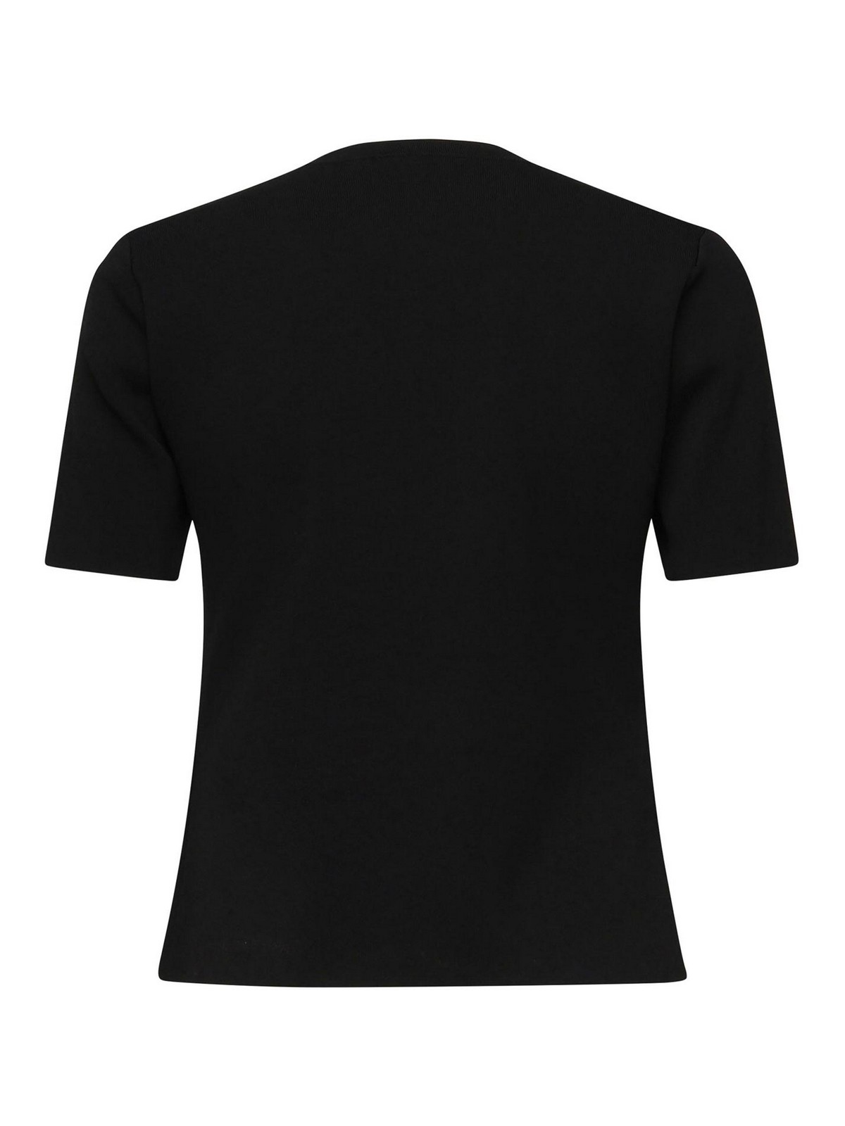 gestrickt aus weichem Viskose-Crop-Interlockgarn, runder Halsausschnitt, kurze Ärmel, halbenge Passform, personalisiert mit aufgedrucktem Logo auf der Vorderseite, dreidimensionaler Effekt, Farbe: schwarz