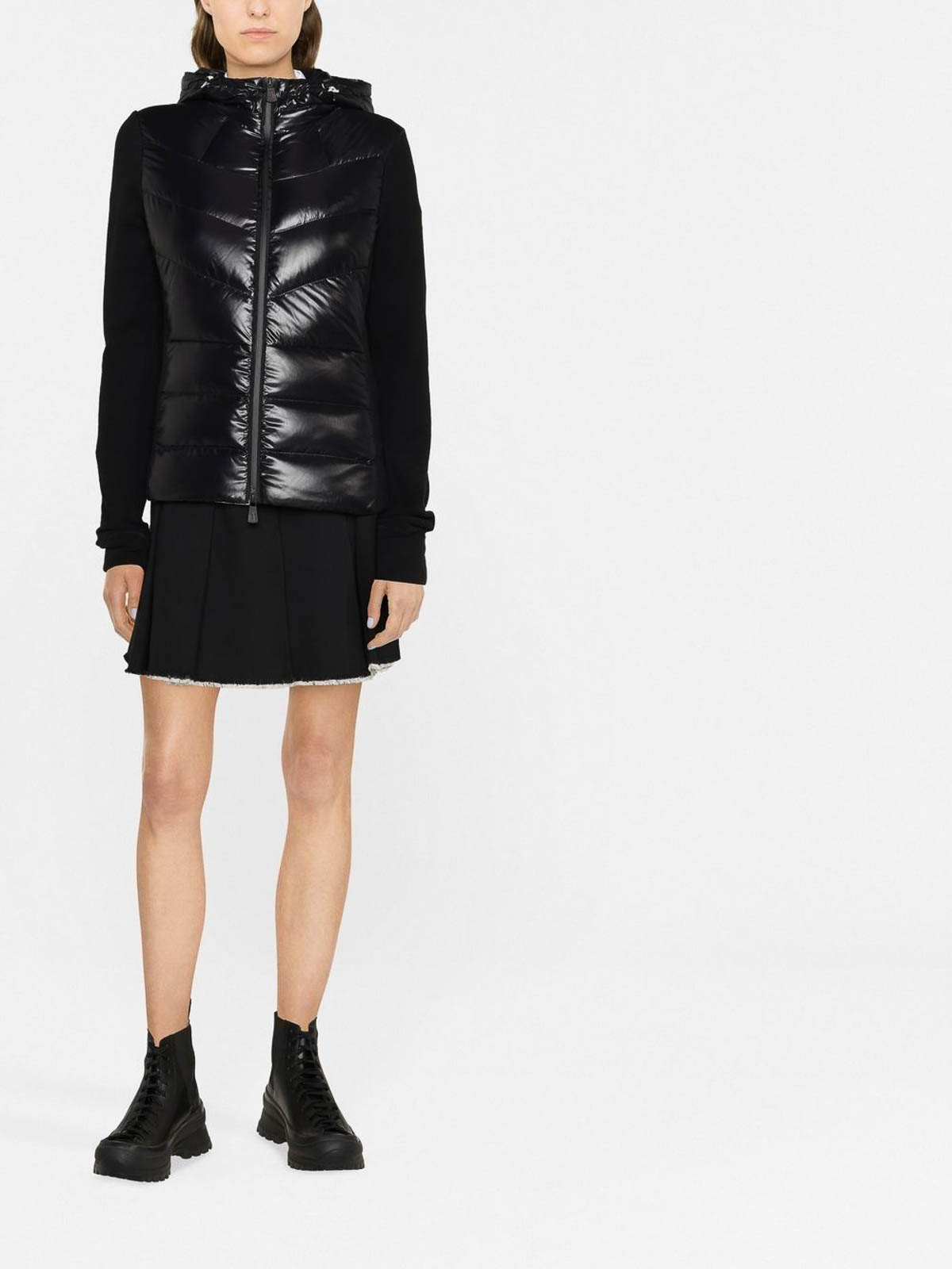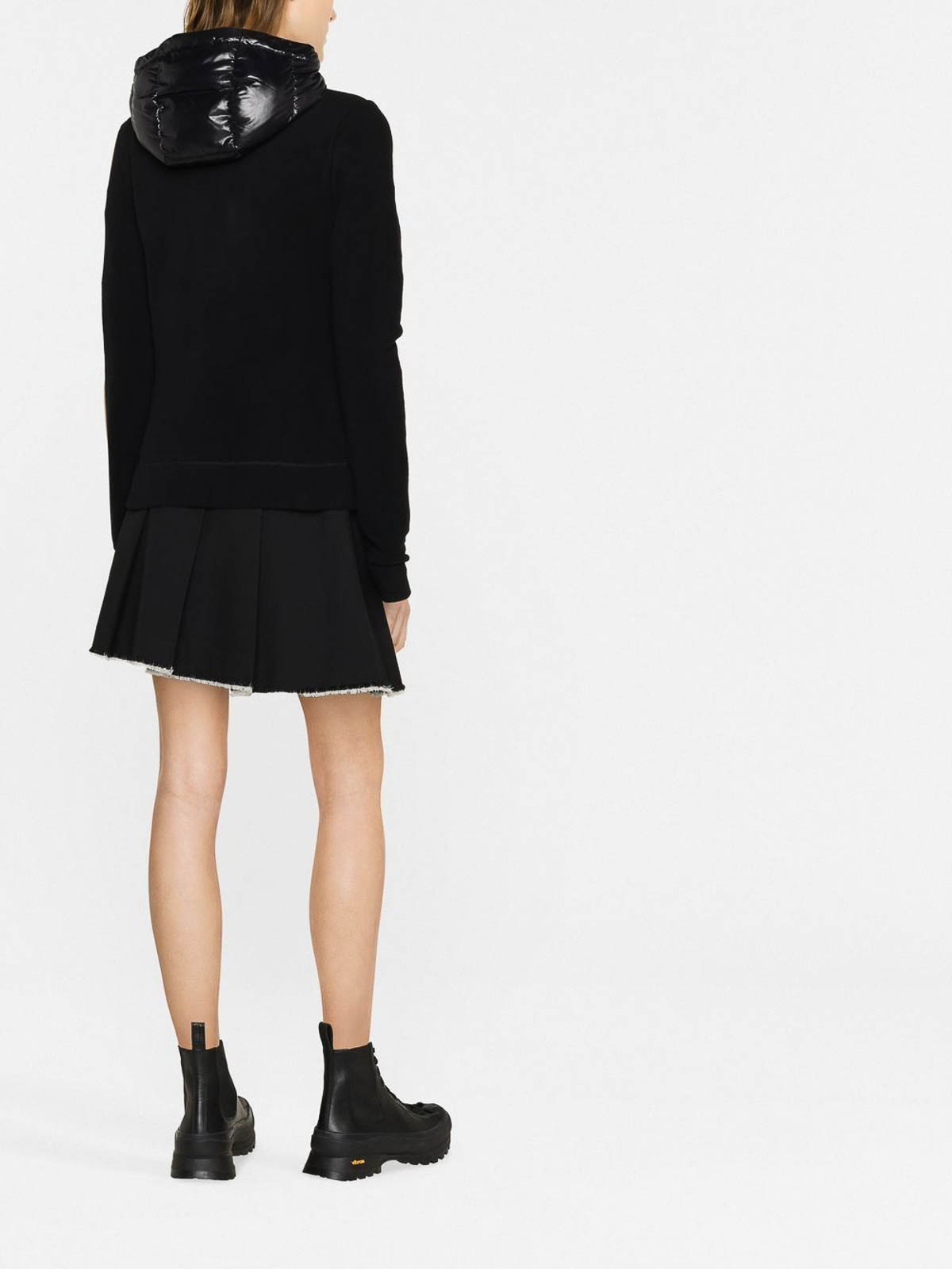 Schwarze, gepolsterte Einsätze, klassische Kapuze, langer S-Logo-Patch am Reißverschluss