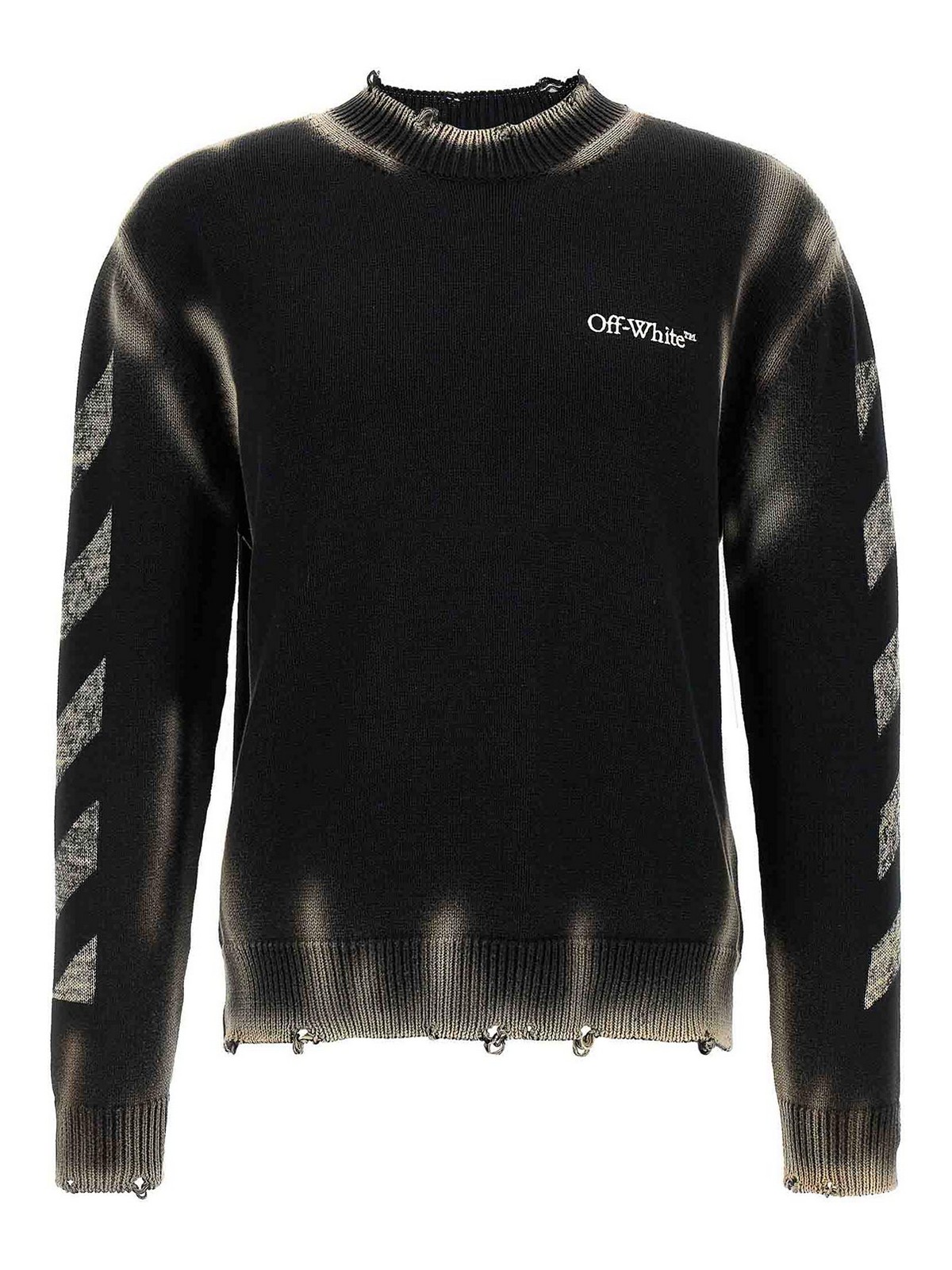 OFF-WHITE: Strickpullover mit Rundhalsausschnitt - Rundhalspullover - Schwarz