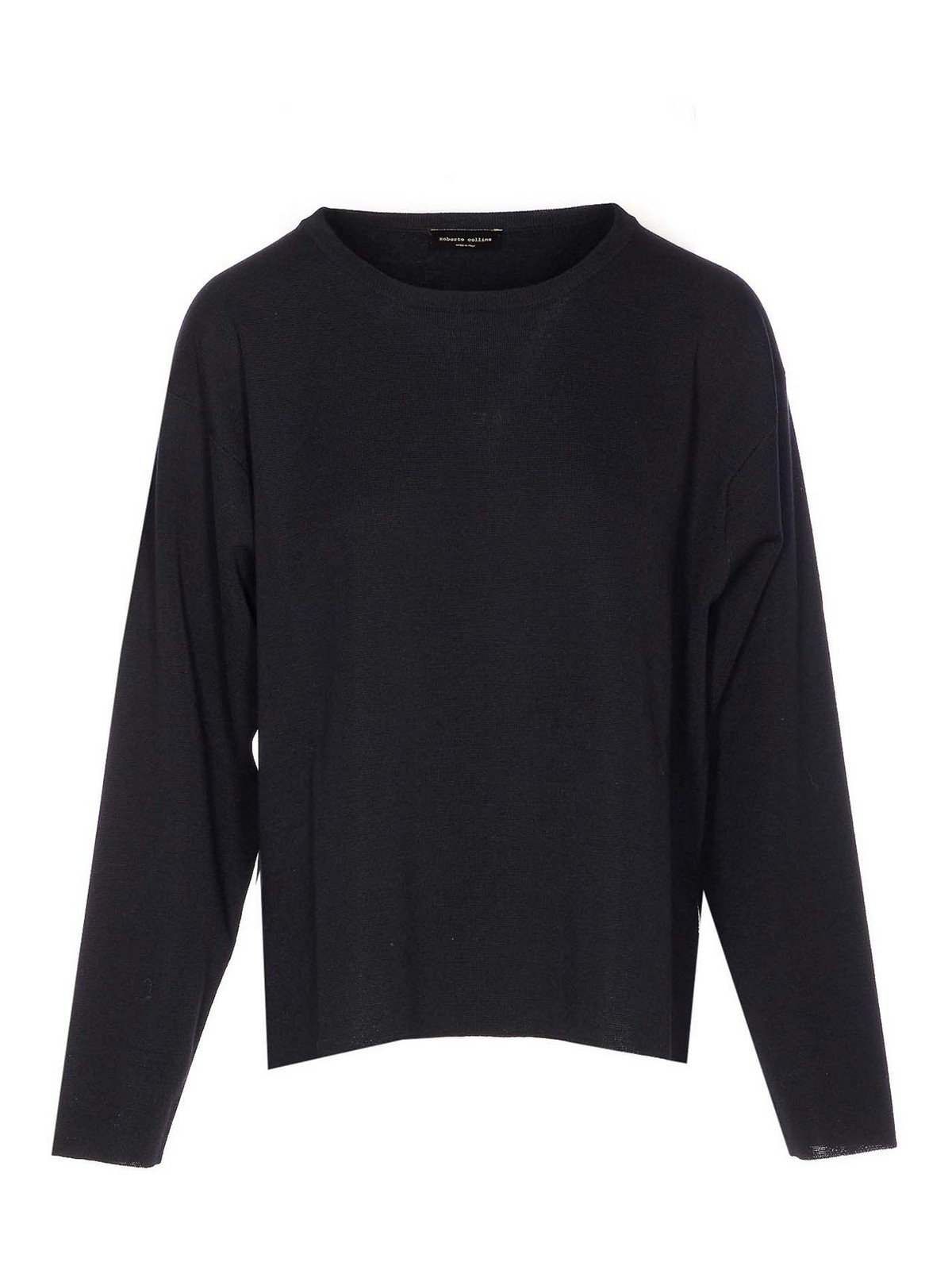 Roberto Collina schwarzer Pullover mit Rundhalsausschnitt und langen Ärmeln Designer-Farbbezeichnung: Schwarz
