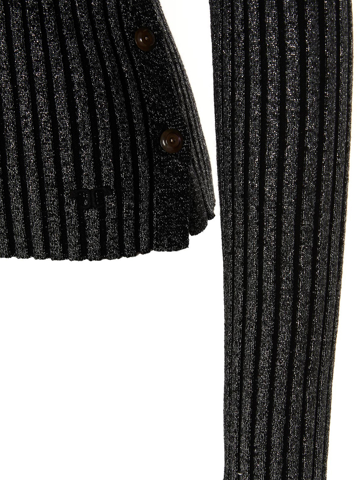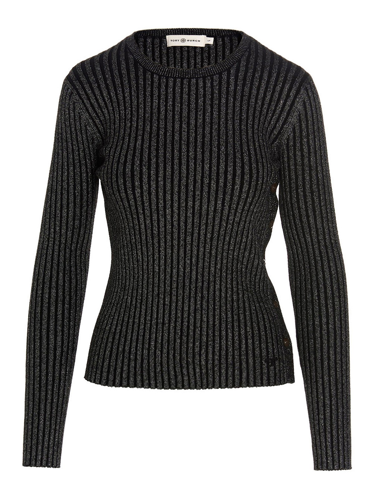 Gerippter Pullover aus Wolle und Lurex mit Rundhalsausschnitt und Seitenknöpfen