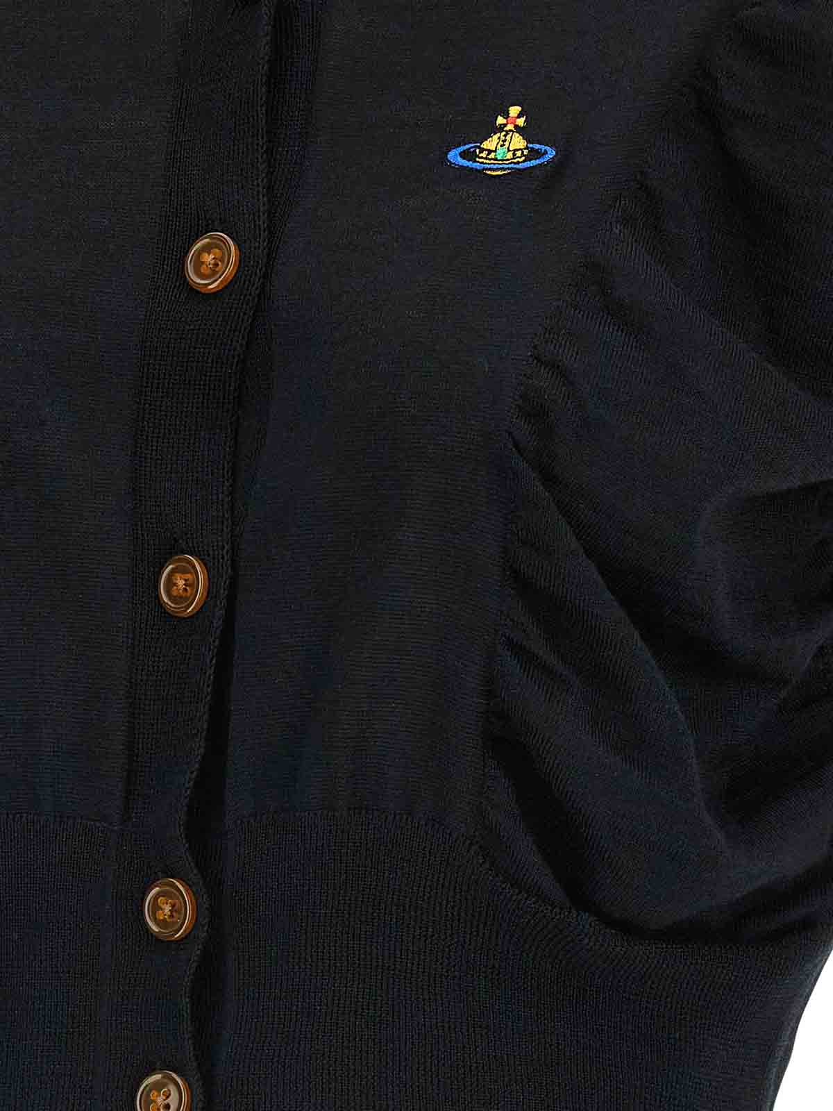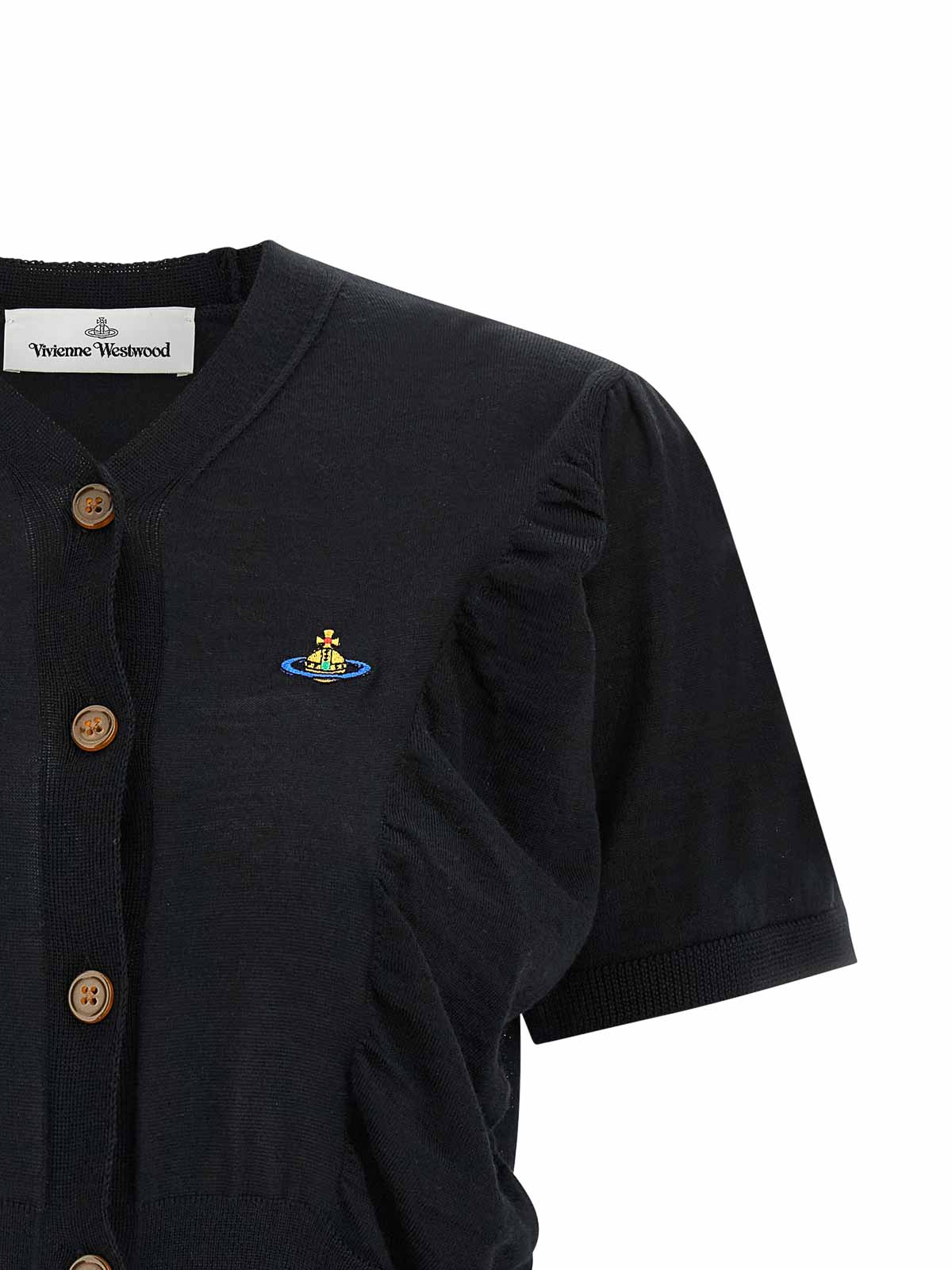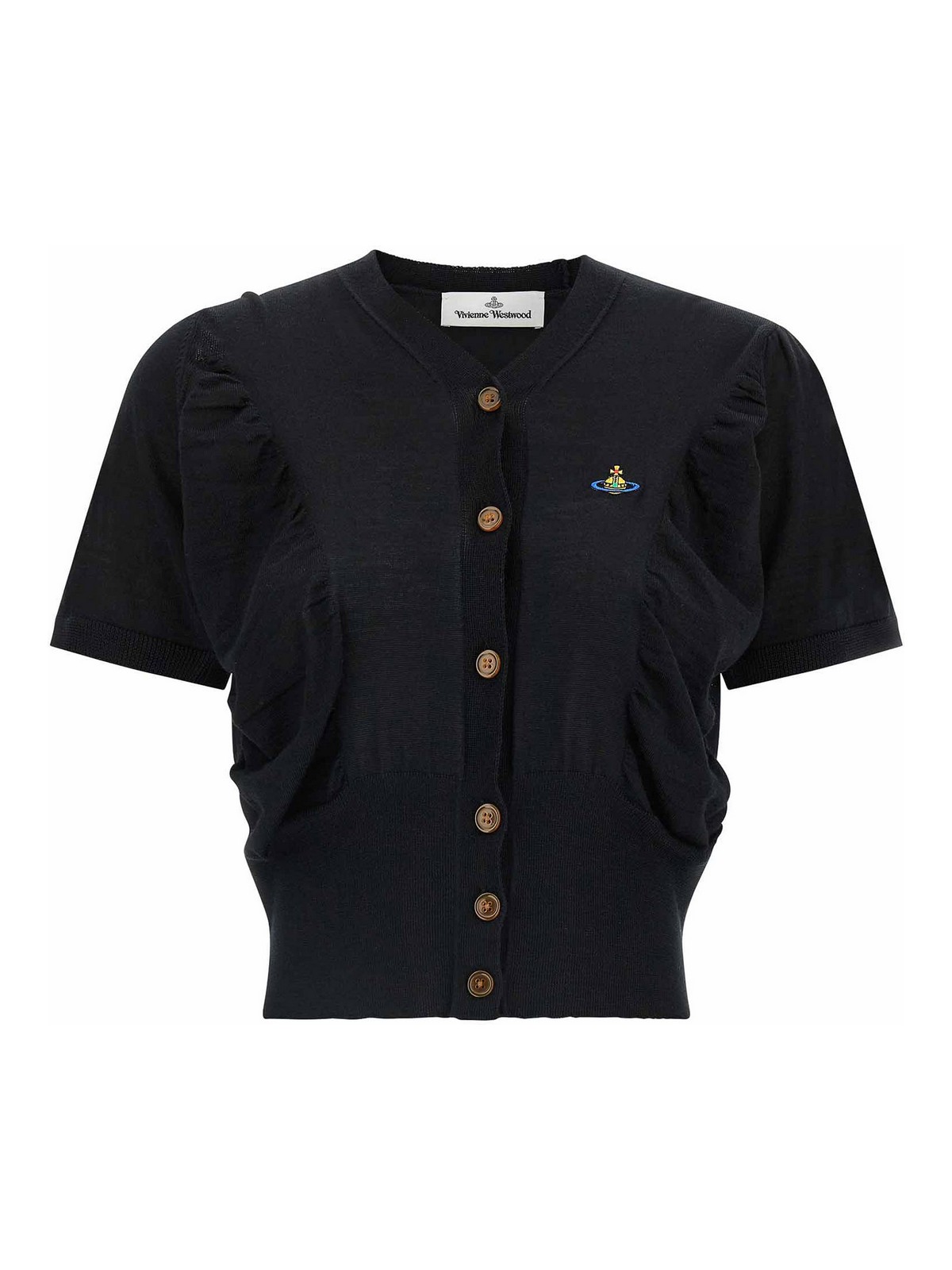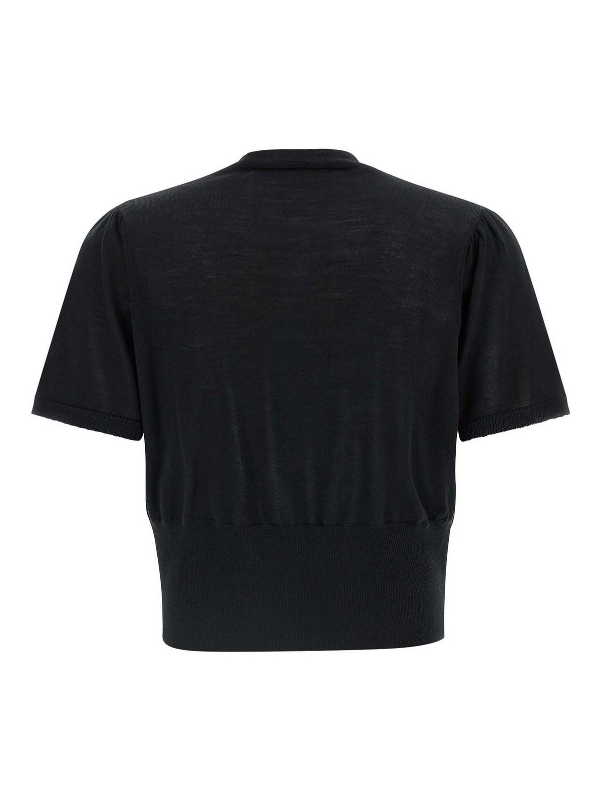 Pamela' Pullover aus Wolle und Seide mit drapierten Seiteneinsätzen auf der Vorderseite, Crop-Modell, Orb-Logo-Stickerei und Knopfverschluss auf der Vorderseite, V-Ausschnitt, kurzen Manschettenärmeln und Band am Saum.