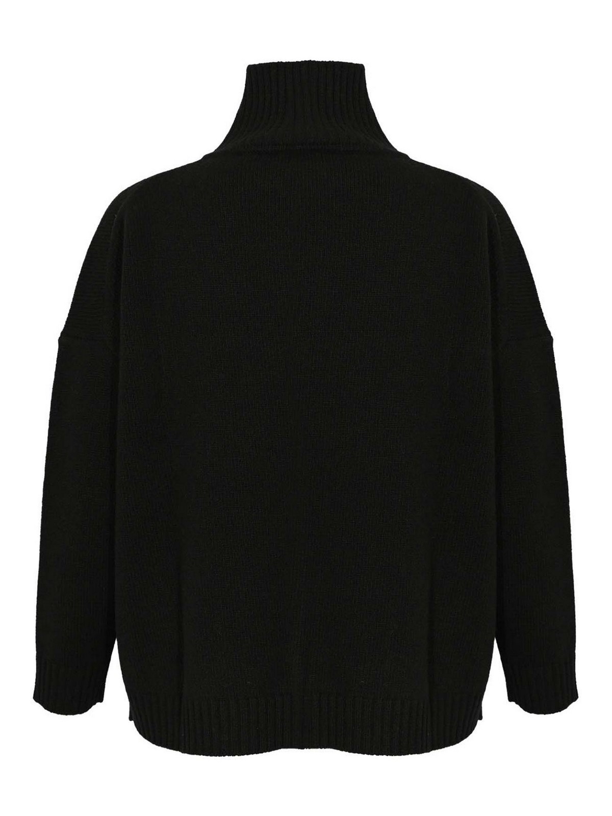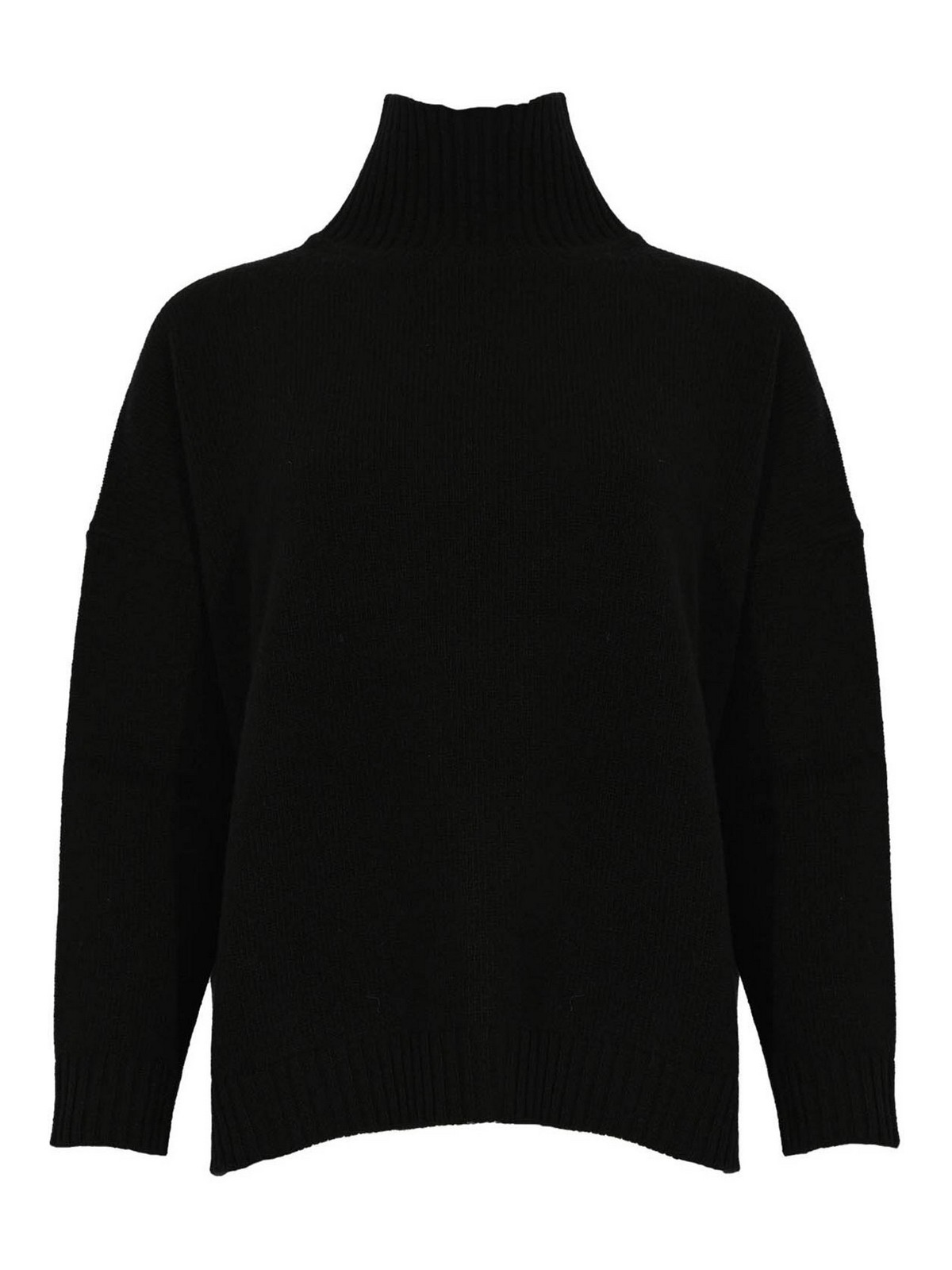 Rollkragenpullover aus reiner Wolle, schwarze Farbe. Ärmel: lang, tief angesetzter Schulterausschnitt: gerippter Rollkragenpullover