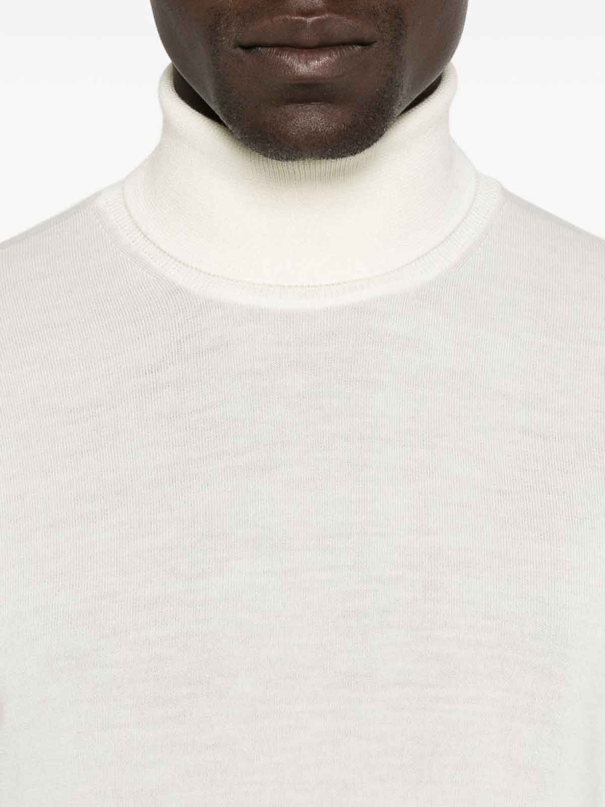 Cremefarbene, lange Ärmel, Rollkragenausschnitt, Rippbündchen, gerader Saum