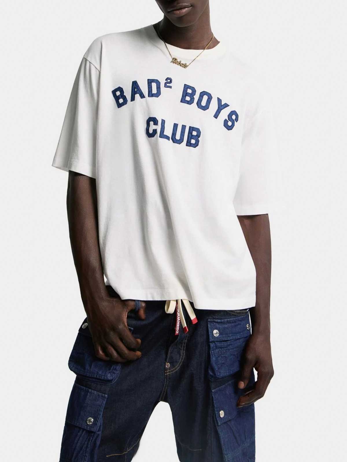 Dsquared2 Bad Boys Club T-Shirt im Vintage-Look, lockerer Schnitt, Rundhalsausschnitt aus mittelschwerem Baumwolljersey.