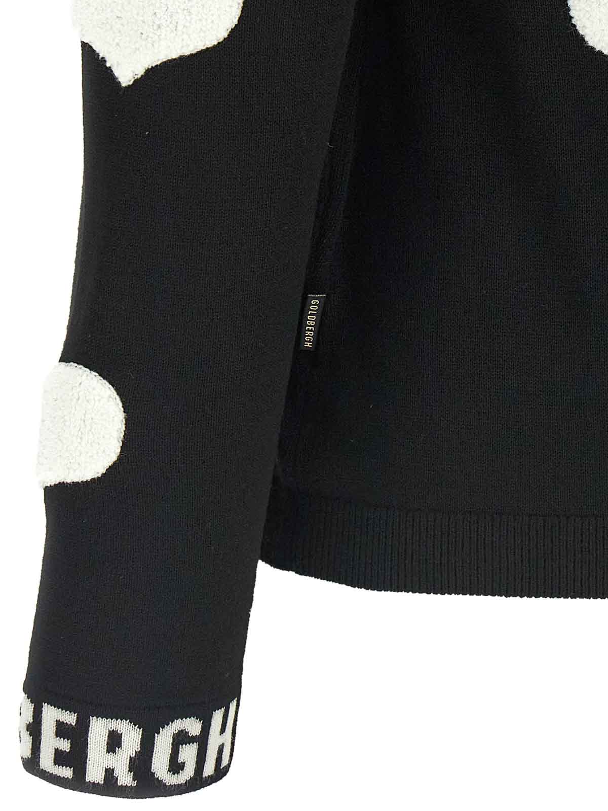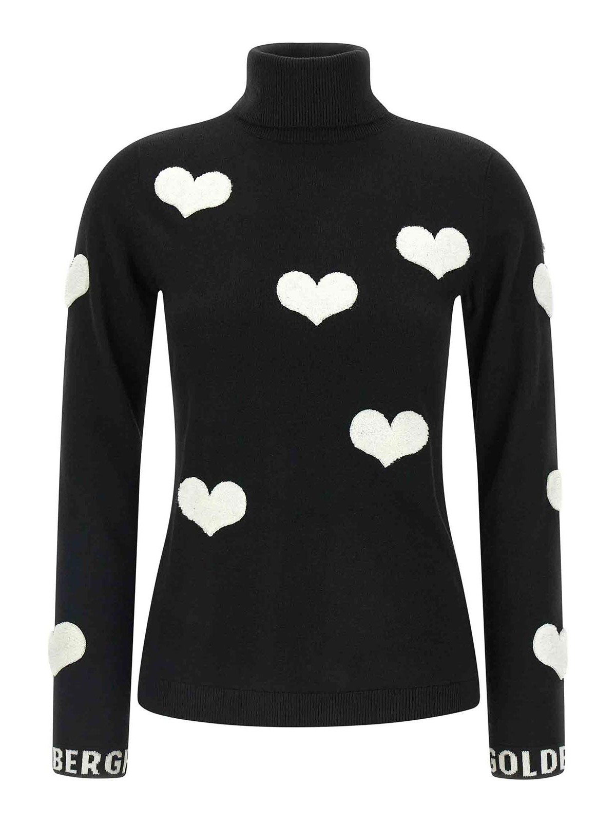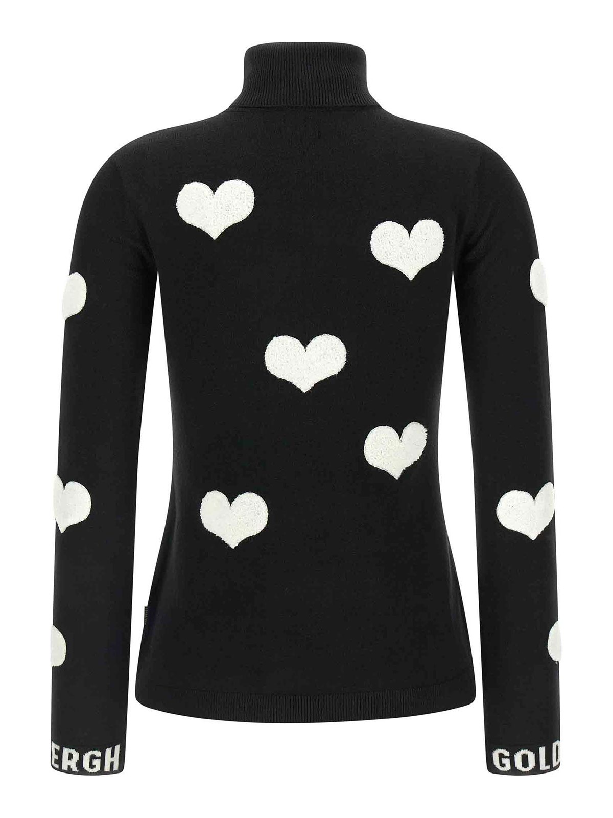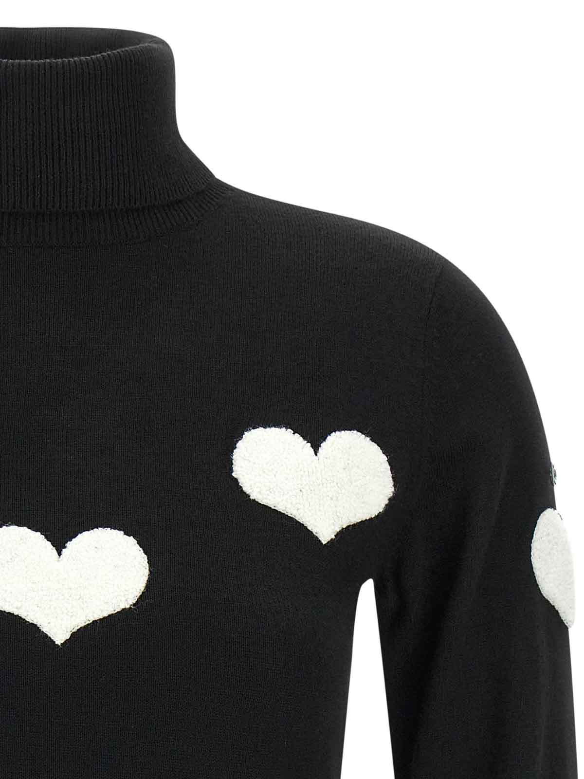 bacio' Rollkragenpullover aus Merinowolle mit herzförmigen Frotteemustern, hochgekrempeltem Stehkragen, langen Manschettenärmeln und einem Logoetikett aus Metall.