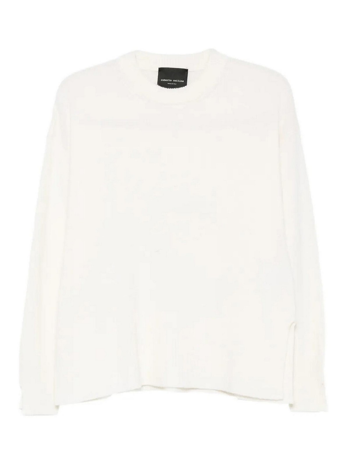 ROBERTO COLLINA: Strickpullover mit Rundhalsausschnitt - Rundhalspullover - Weiß