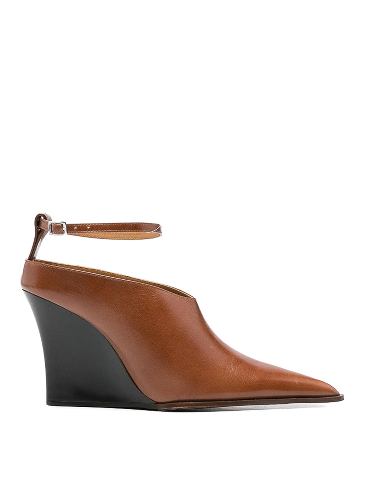 Brauner Knöchelriemen mit spitzer Zehenpartie und Keilabsatz