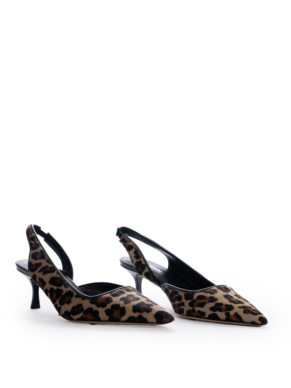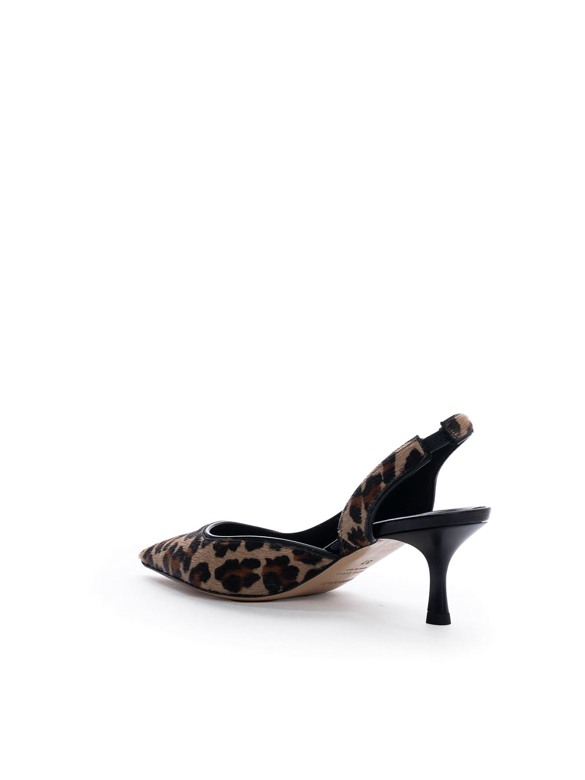 Elastischer Riemen aus Ponyfell mit Leopardenmuster und spitzer Zehenpartie auf der Rückseite