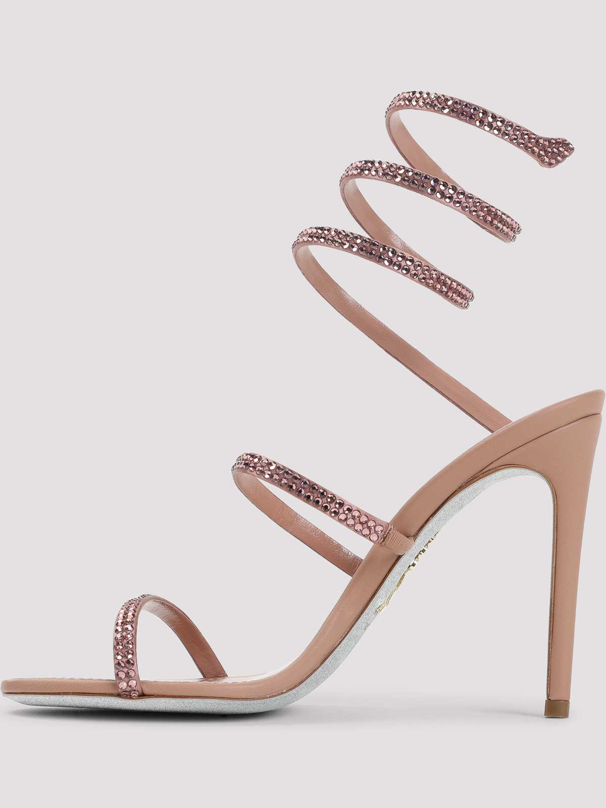 Ren Caovilla Phard Blush Rose Snake Sandalen in reiner Rouge Rose Sandalen rund offene Zehenoberseite Riemen mit tonalem Knöchelriemen in Schlangenform mit tonalen hohen dünnen Absätzen