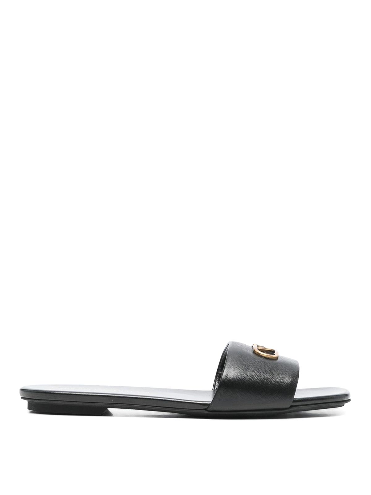Flacher, quadratischer, offener Zehenriemen mit schwarzem Markenlogo