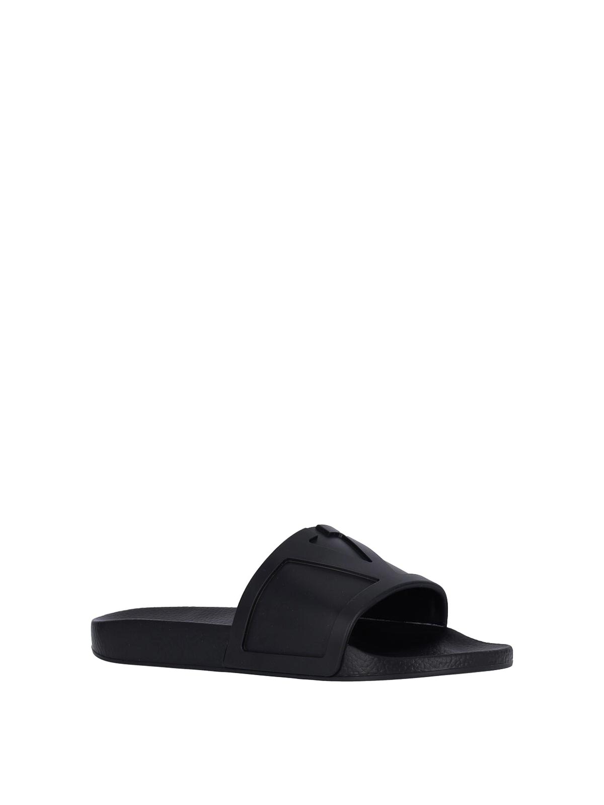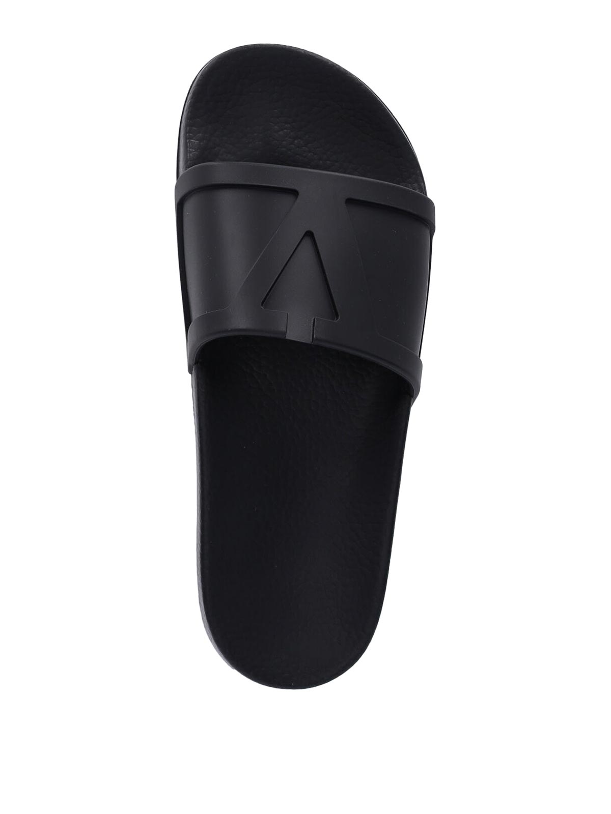 Valentino Garavani Slidesandale mit Logo, aus schwarzem Gummi, runde, offene Spitze, breites Oberband mit Logo-Prägung, Slip-On-Passform, Gummisohle.