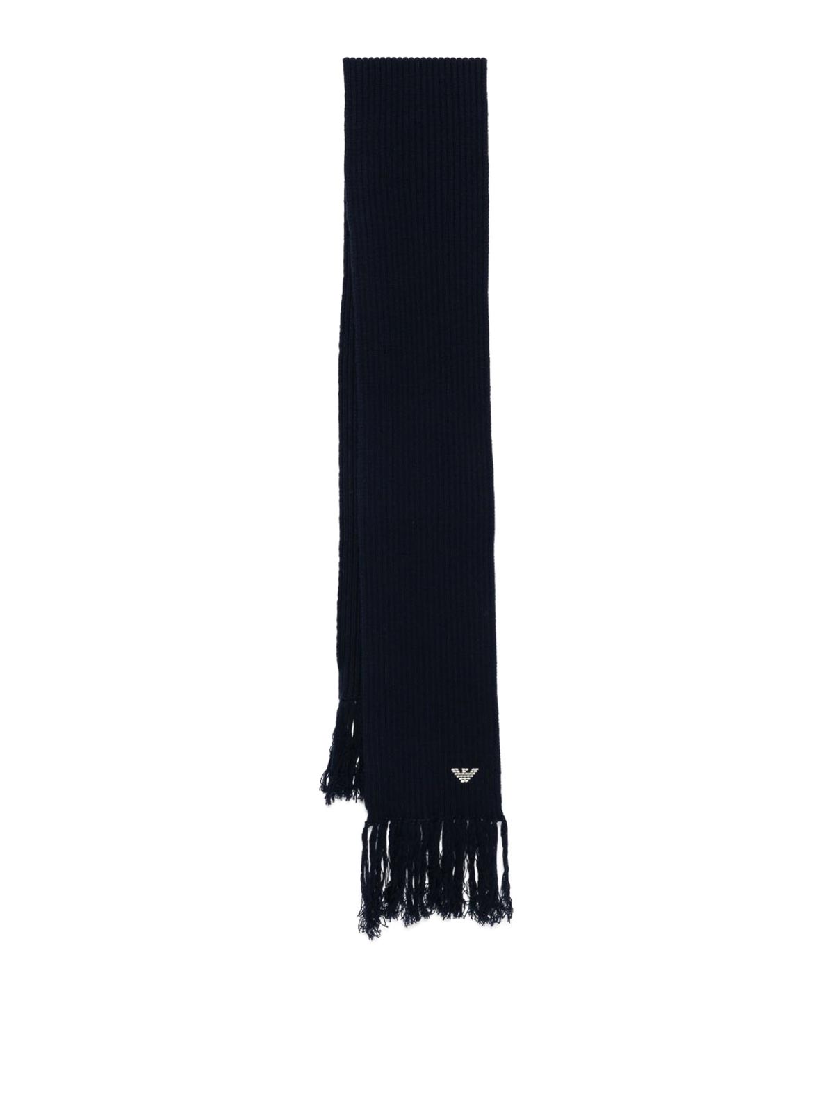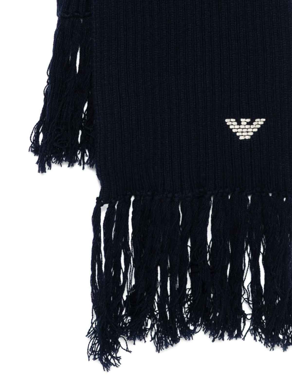 Marineblauer Rippstrick mit Fransenrand und kleinem gesticktem Logo