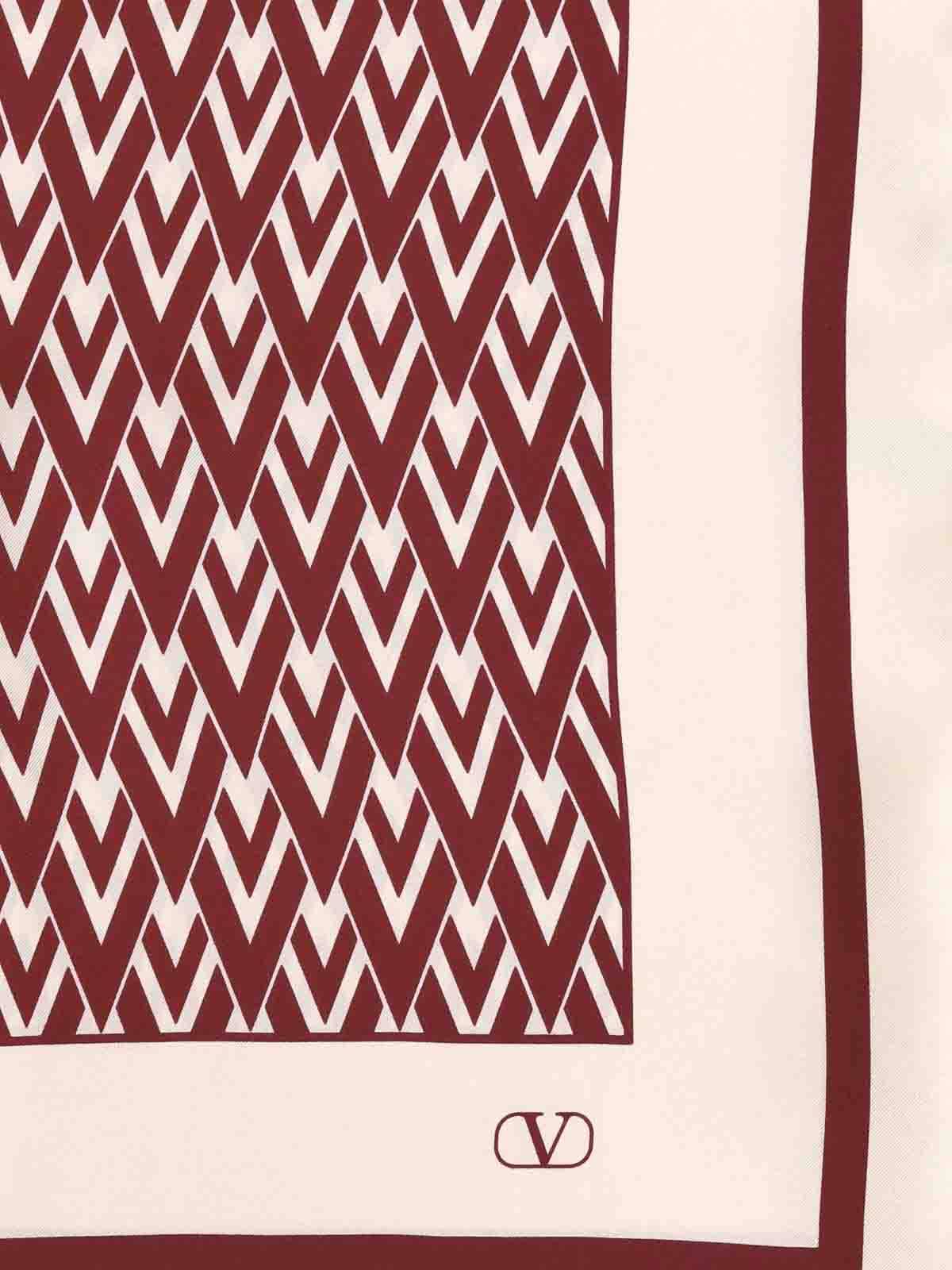 Designer-Farbe: Creme/Rosso, Seide, Toute-la-V-Print, cremefarbener Rand, quadratische Form.
