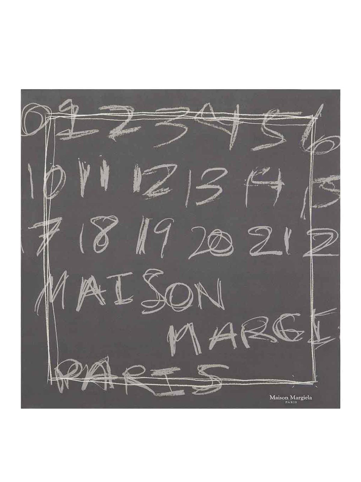 Grauer quadratischer Seidentuch von Maison Margiela mit dem charakteristischen Zahlenprint für einen raffinierten und zeitlosen Look