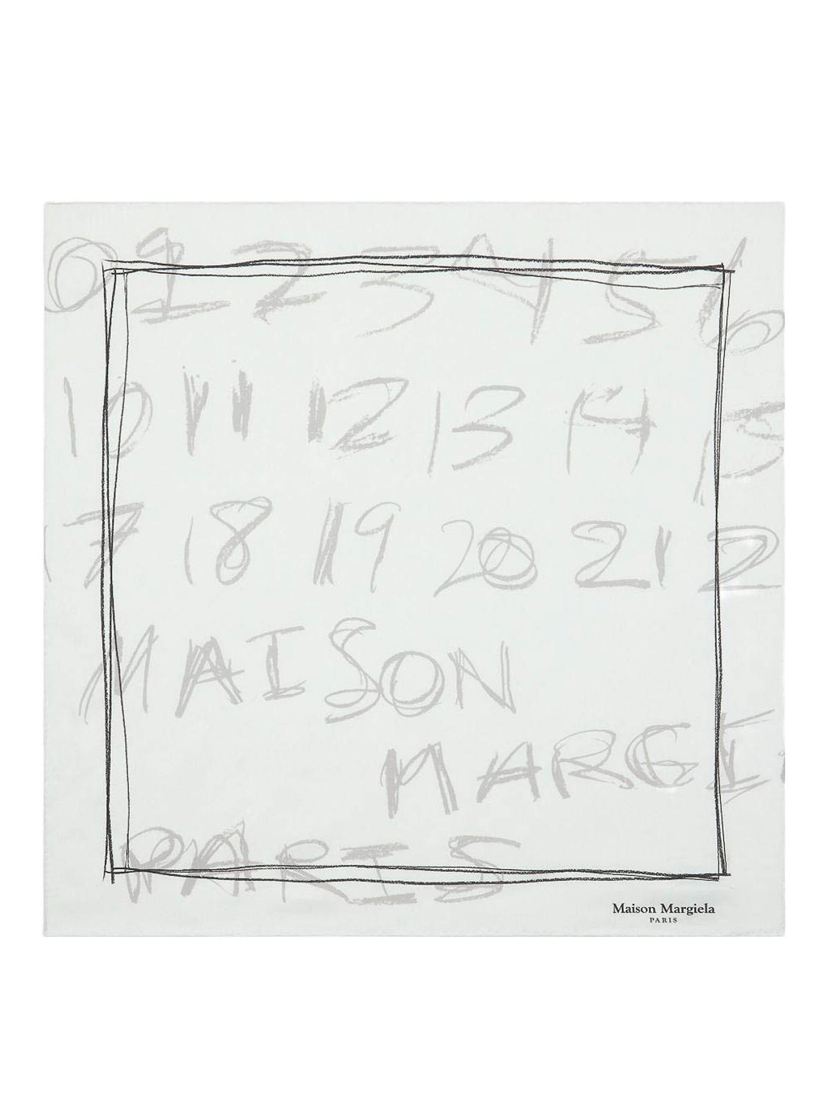 Hellgrauer quadratischer Seidentuch von Maison Margiela mit dem charakteristischen Zahlenprint für einen raffinierten und zeitlosen Look