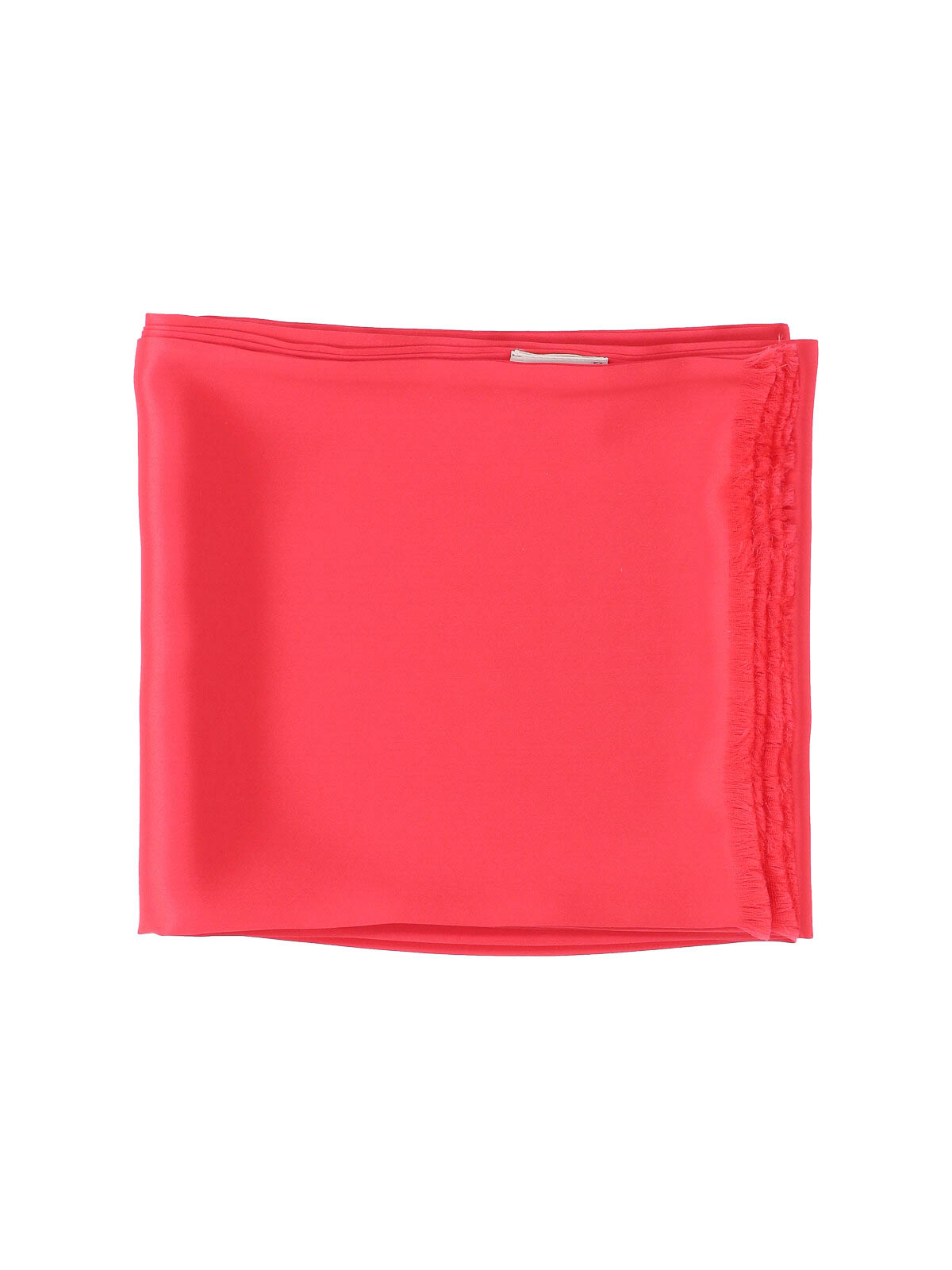 Seidentuch Destin, rot, rechteckiges Design, Fransen an der Unterseite, internes Labeldetail.