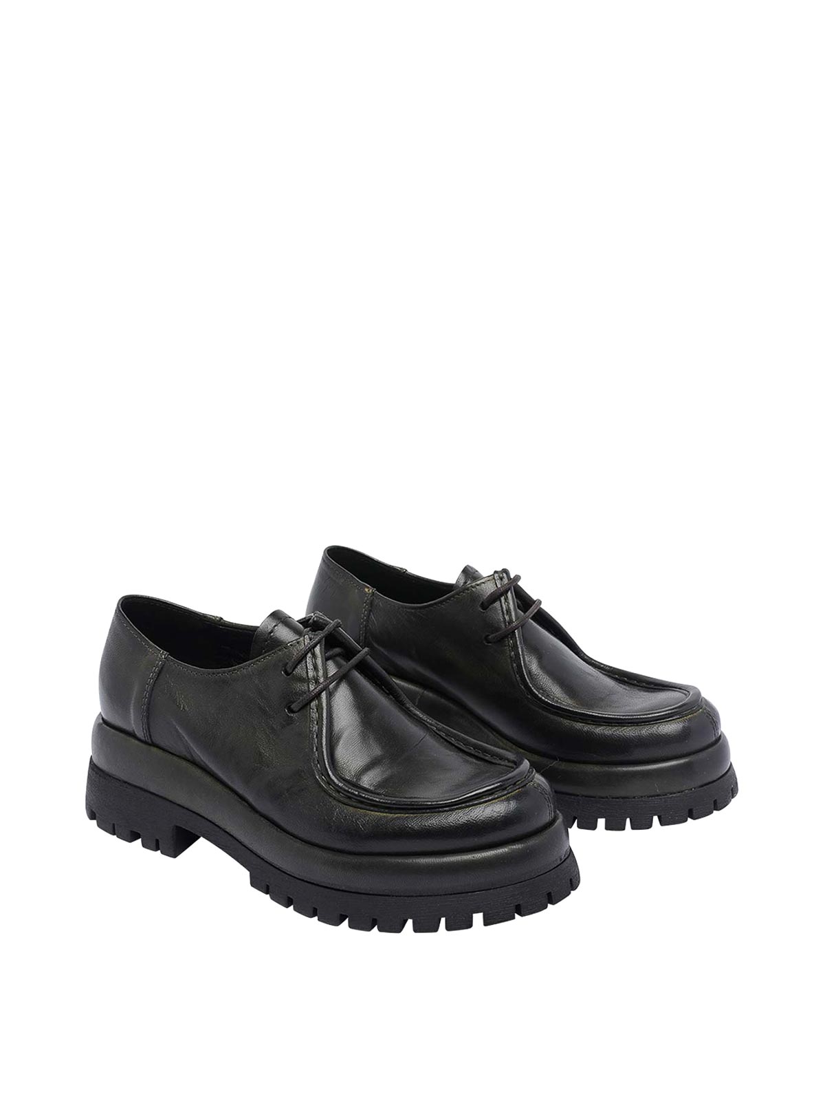 Pawelk's grüne Cru-Mokassins, Schnürverschluss, runde Spitze, Obermaterial aus Leder