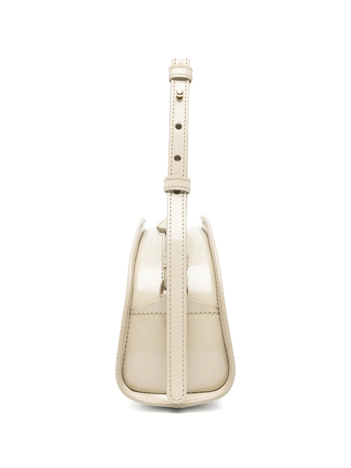 Mandelfarbener, verstellbarer Riemen mit Reißverschluss und goldfarbener Hardware. Dieses Stück wird komplett mit einem schützenden Staubbeutel geliefert.