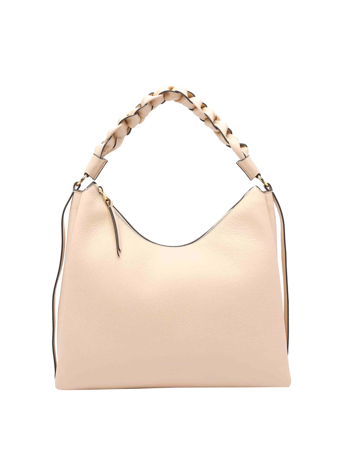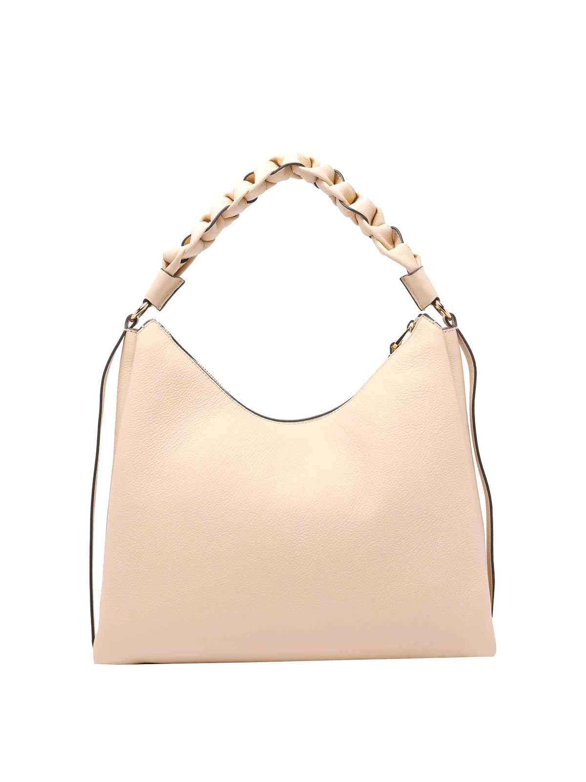Coccinelle beigefarbene Boheme-Schultertasche, Reißverschluss, 3 Fächer, 2 offene Innentaschen, 1 Henkel, Ledermodell