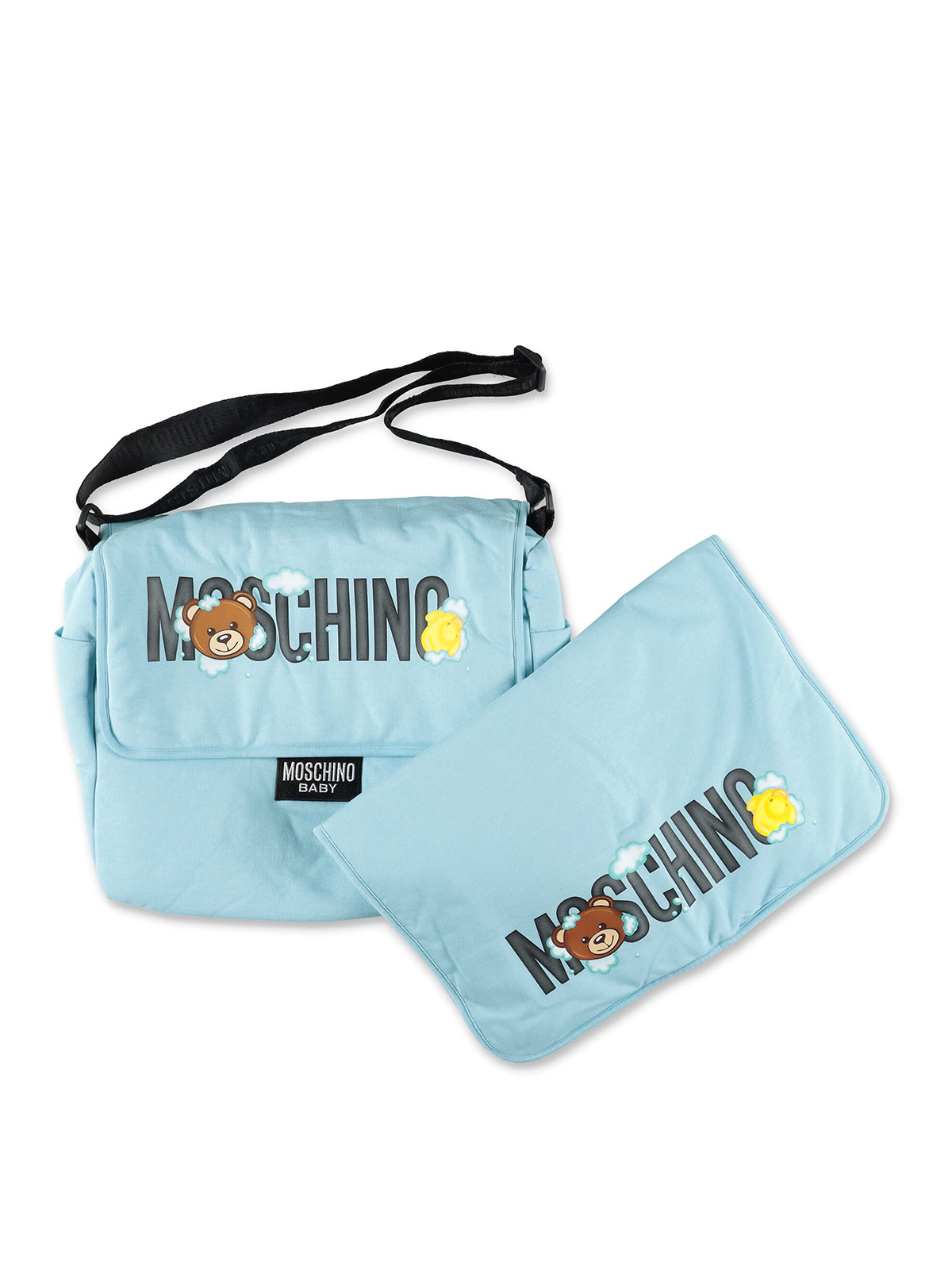 Wickeltasche Teddybär aus hellblauer Baumwolle