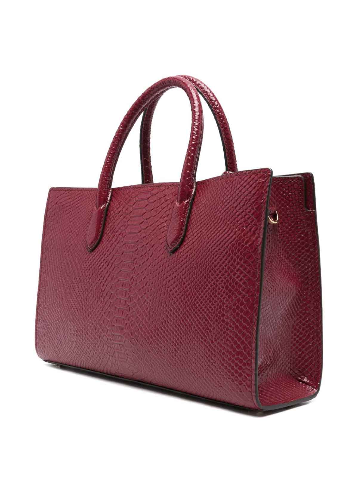 Rote, rechteckige Griffe mit Schlangenledermuster