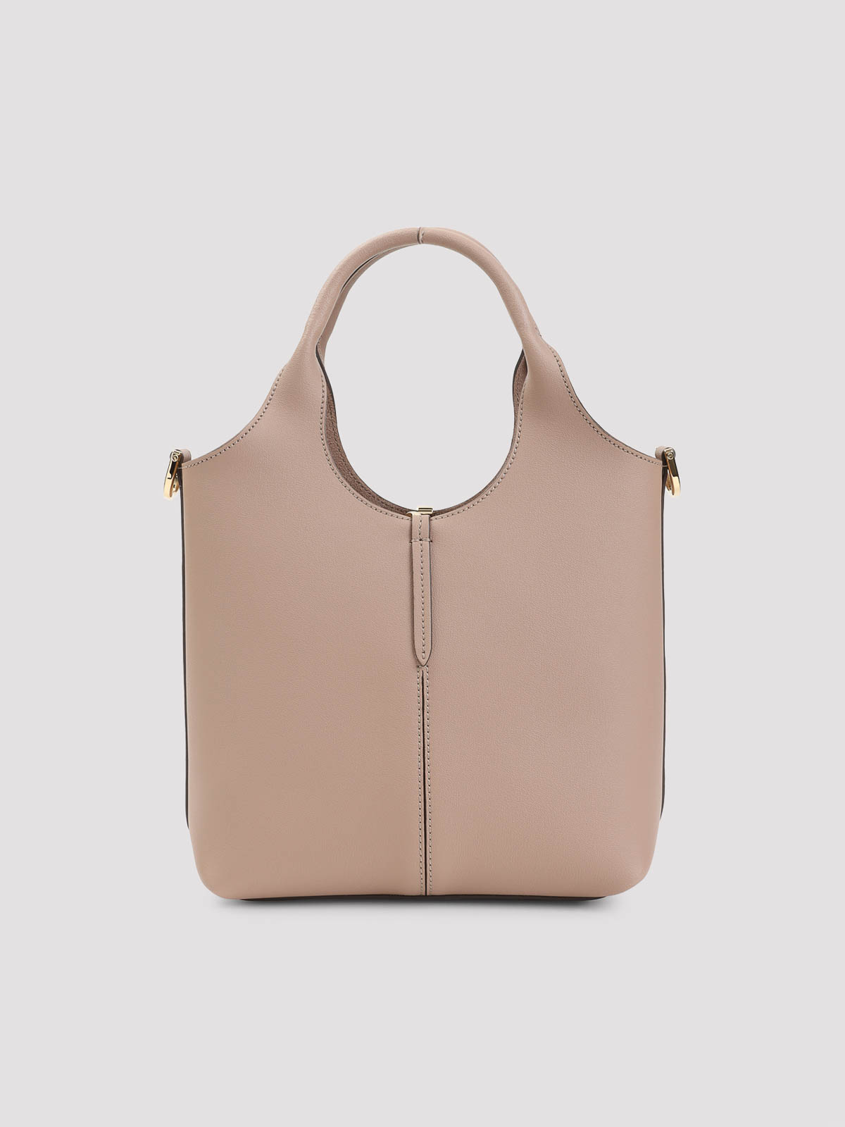 EBR-Mini-Einkaufstasche aus beigem Leder von Tod`s Ginger Snap. Tasche aus reinem beigem Ginger-Snap-Leder, Tragegriffe, goldfarbenes Metallic-Logo-Detail auf der Vorderseite, verstellbarer und abnehmbarer Schultergurt, abnehmbare Innentasche, ein Hauptfach, goldfarbene Hardware.