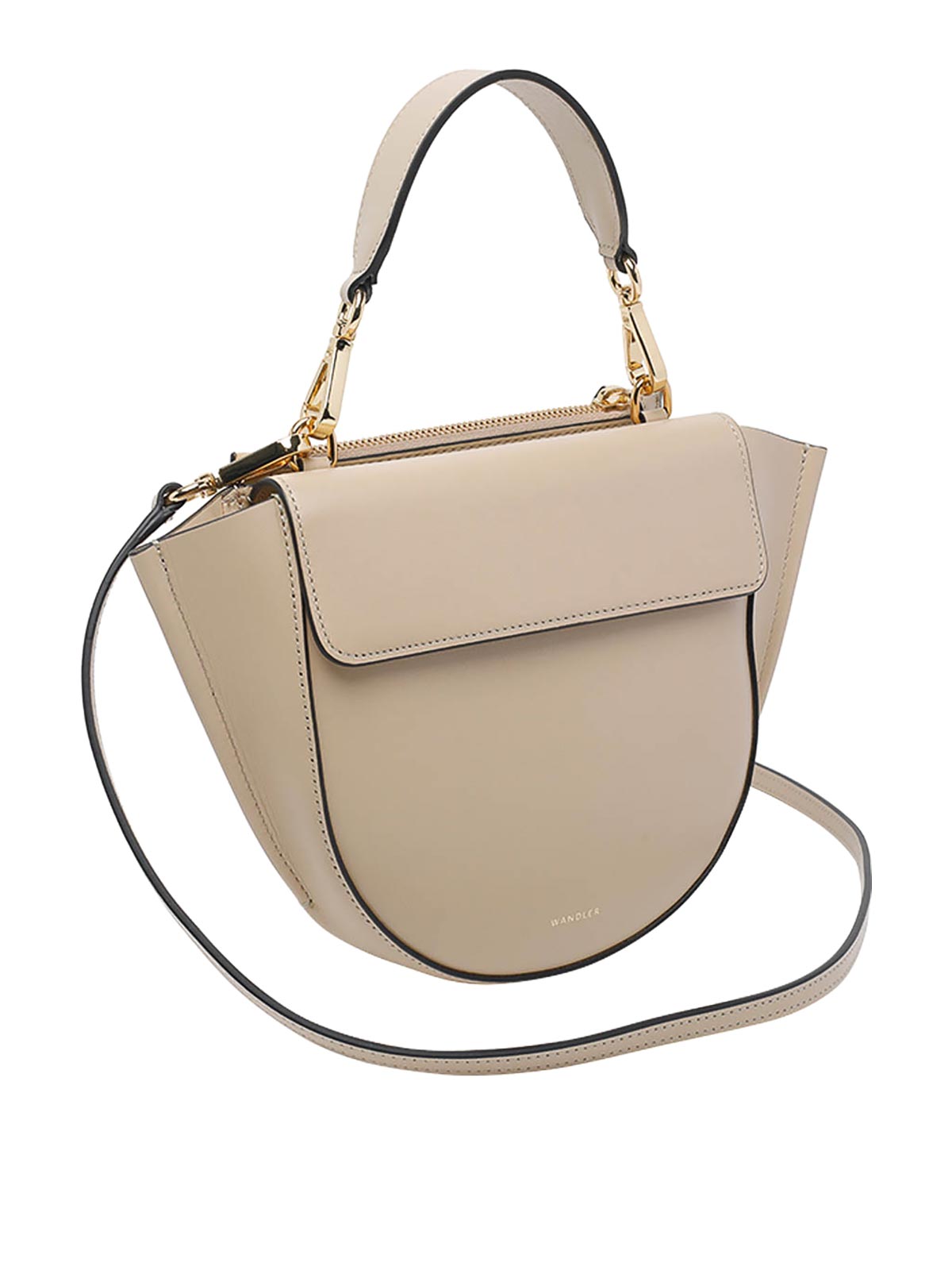 Wandler Saddle Hortensia Mini-Handtasche, Magnetverschluss, offene Innentasche, Außentasche mit Reißverschluss und Magnetverschluss, abnehmbarer Griff, anpassbarer und abnehmbarer Riemen, vorderes Mini-Logo