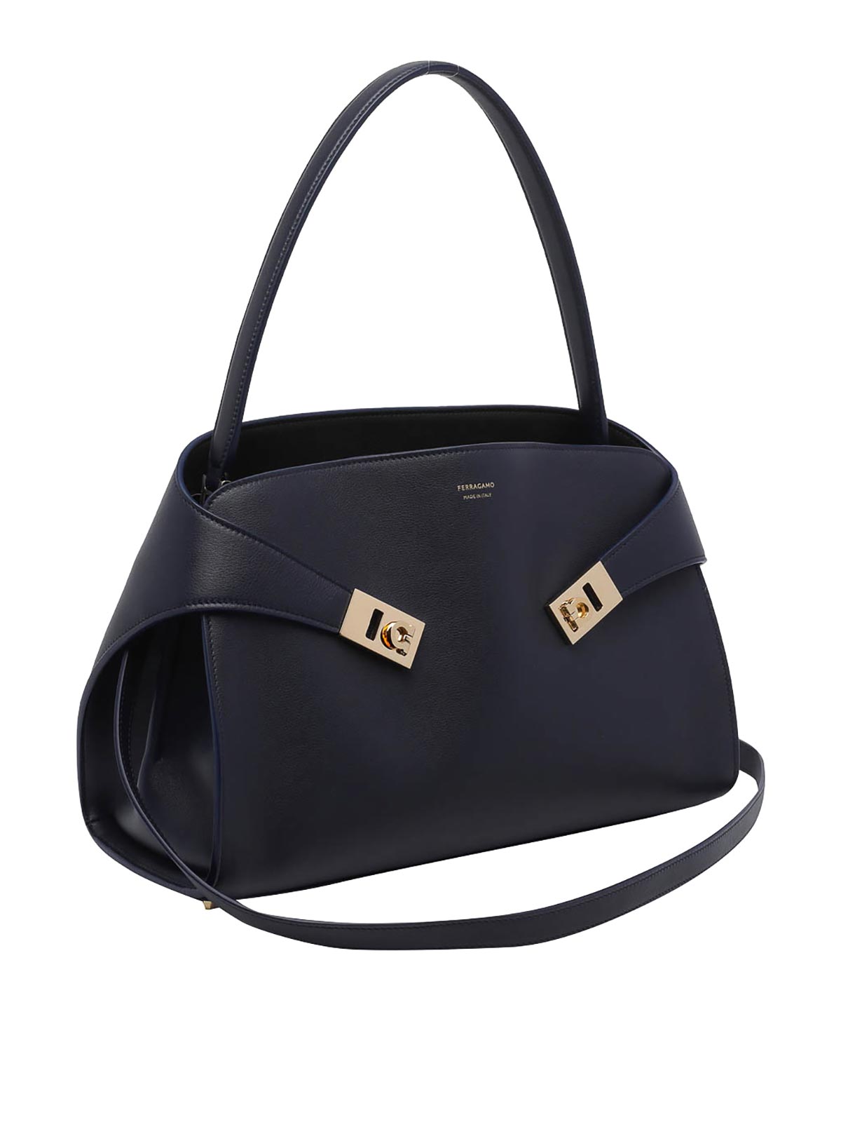 Ferragamo Blue Hug Handtasche, Magnetverschluss, 2 Fächer, zentrale Tasche mit Reißverschluss, 2 offene Taschen, ein Griff, verstellbarer und abnehmbarer Schultergurt