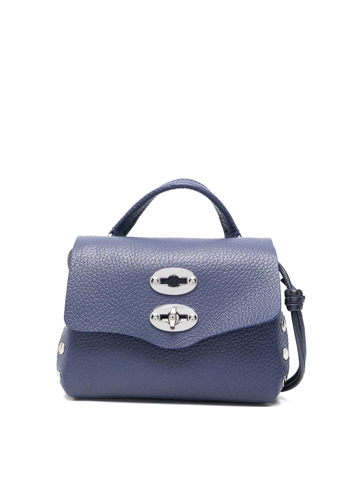 Blauer Griff, genarbter Drehverschluss mit Nieten und strukturierter Oberfläche. Dieses Stück wird komplett mit einem schützenden Staubbeutel geliefert.