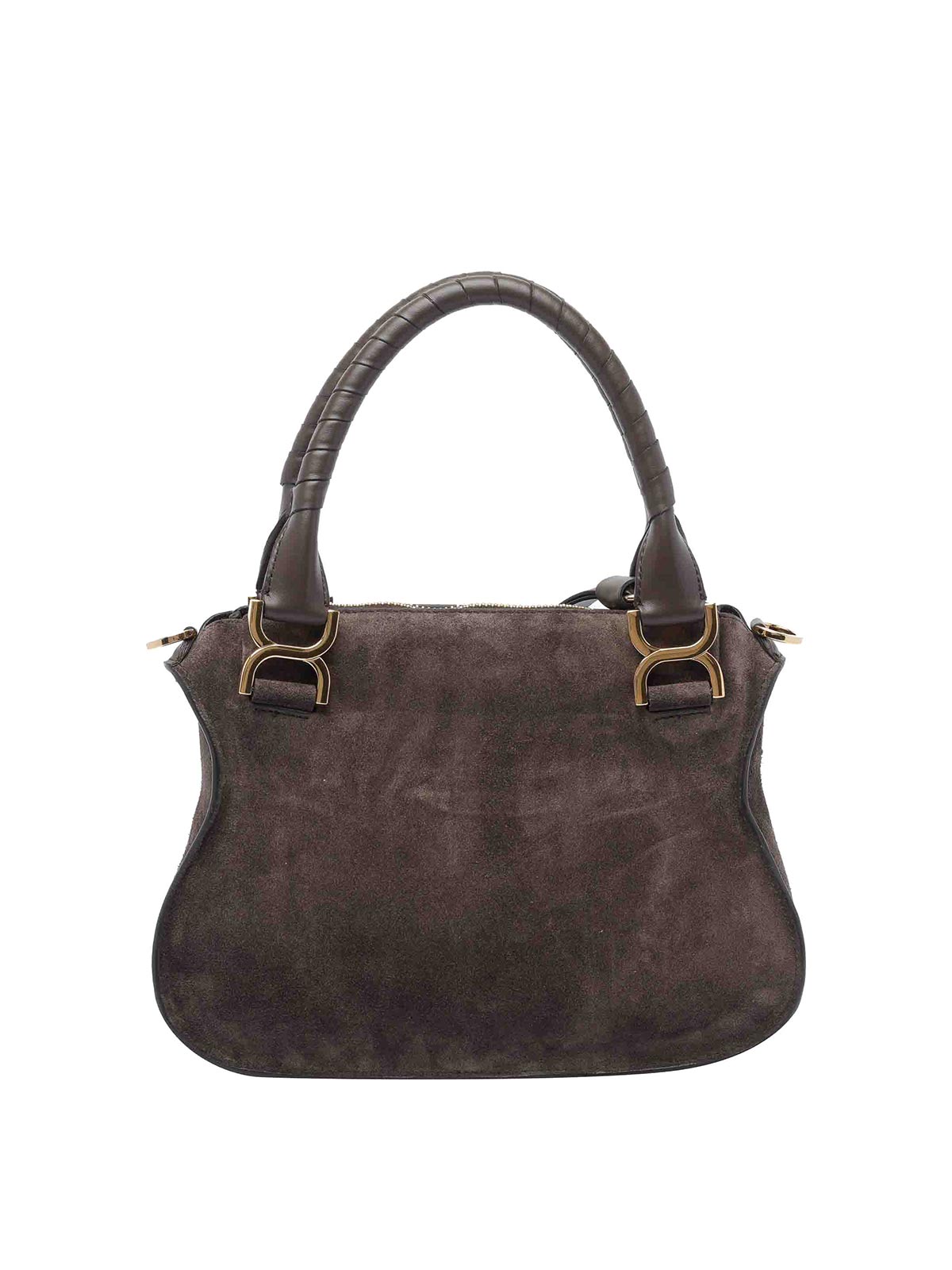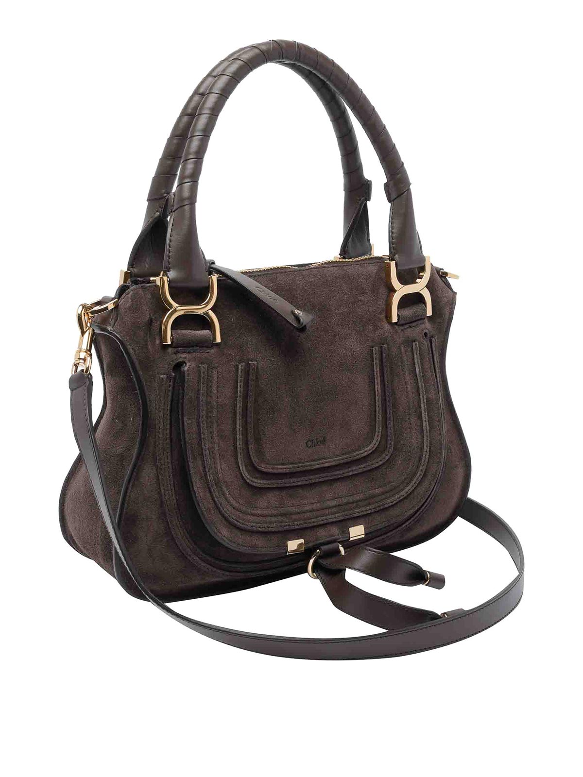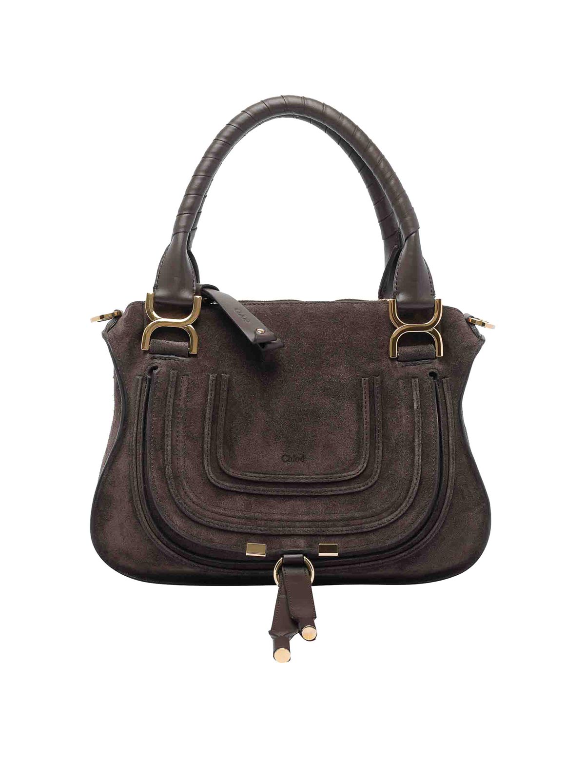 Chloe' Braune Mini-Handtasche Marcie aus Veloursleder, Reißverschluss, offene Innentasche, Außentasche, abnehmbarer Riemen, Obermaterial aus Veloursleder