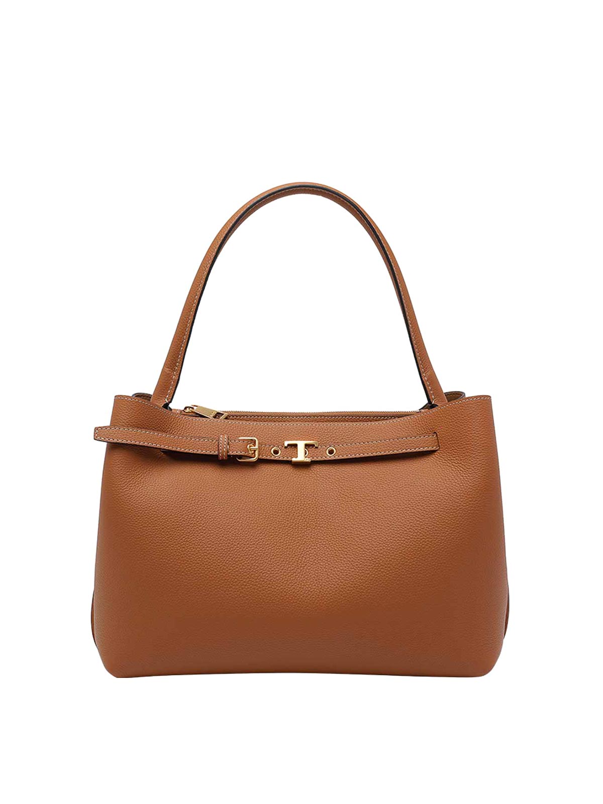 Kleine braune Lederhandtasche von Tod's, ineinandergreifender Verschluss, 2 Fächer, Schulterriemen, Logo auf der Vorderseite
