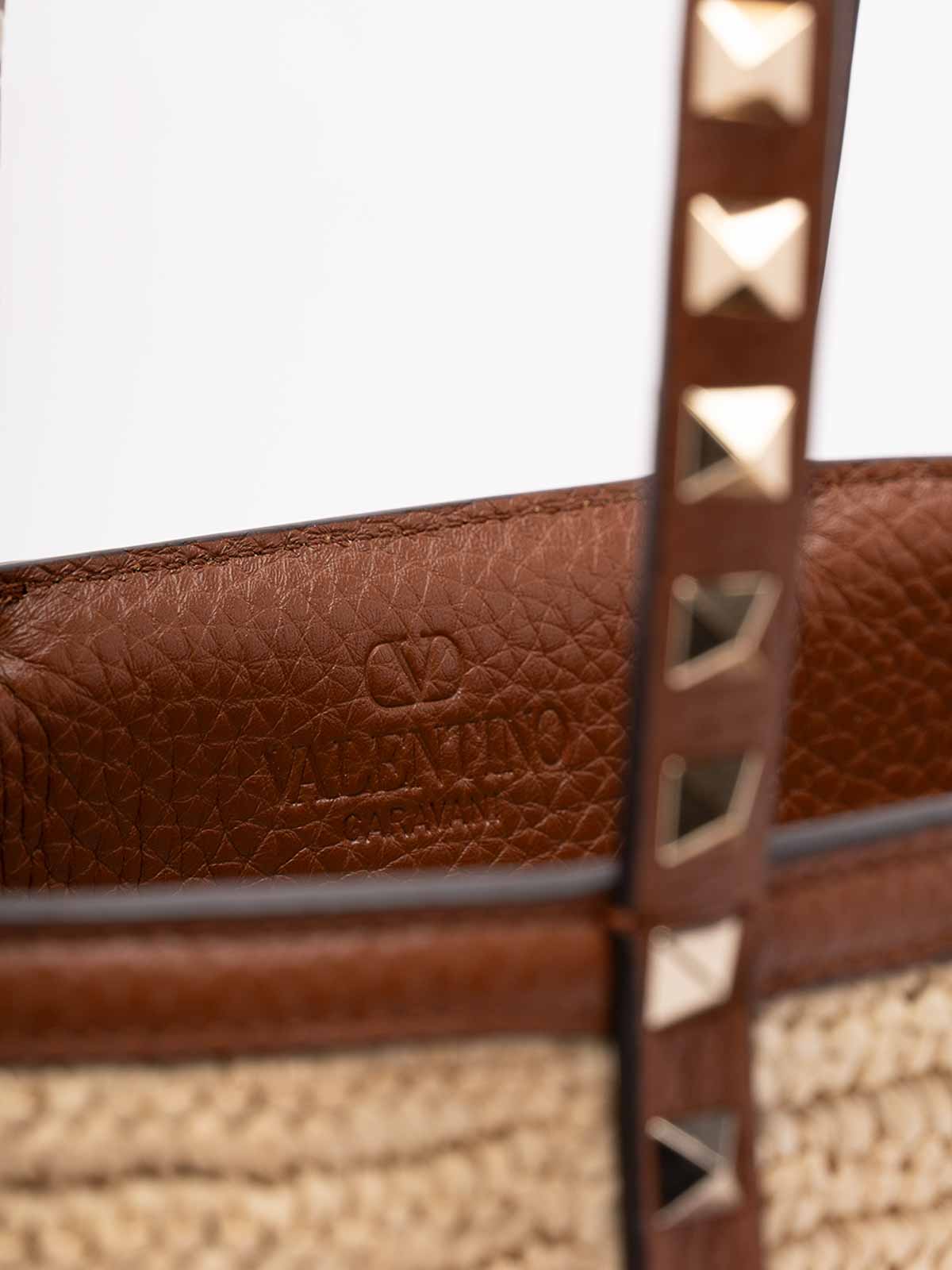 Rockstud Mini-Tasche aus Leder mit Sattleroptik, verziert mit ikonischen Nieten. Die natürliche Farbe unterstreicht die Handwerkskunst und den ikonischen Charakter des Modells.