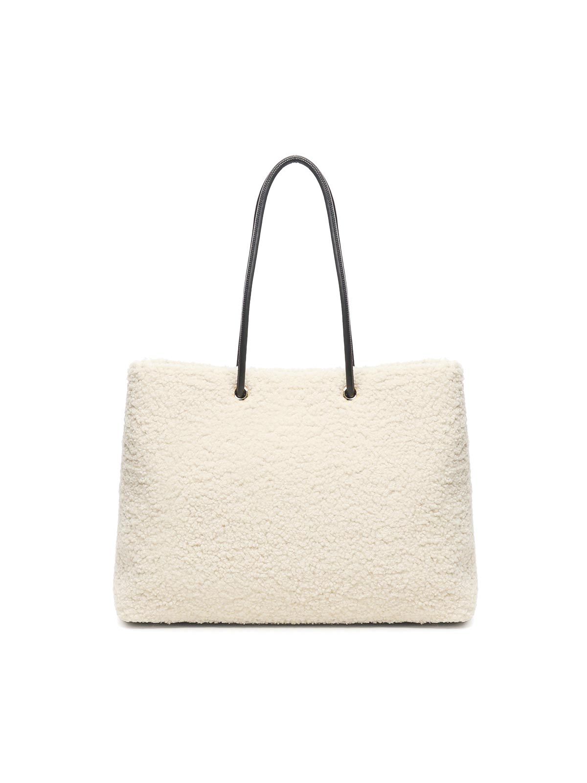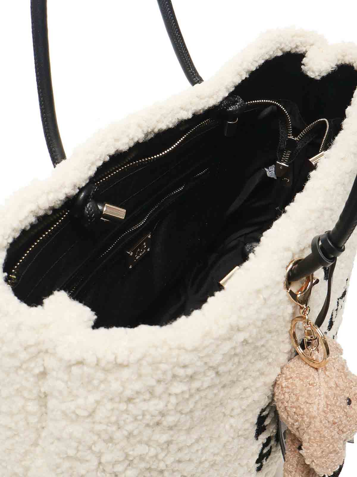 obere Henkel, Logo auf der Vorderseite, Reißverschluss, abnehmbarer Anhänger, Maße: 40 x 30 x 11 cm, Farbe: ecru, schwarz