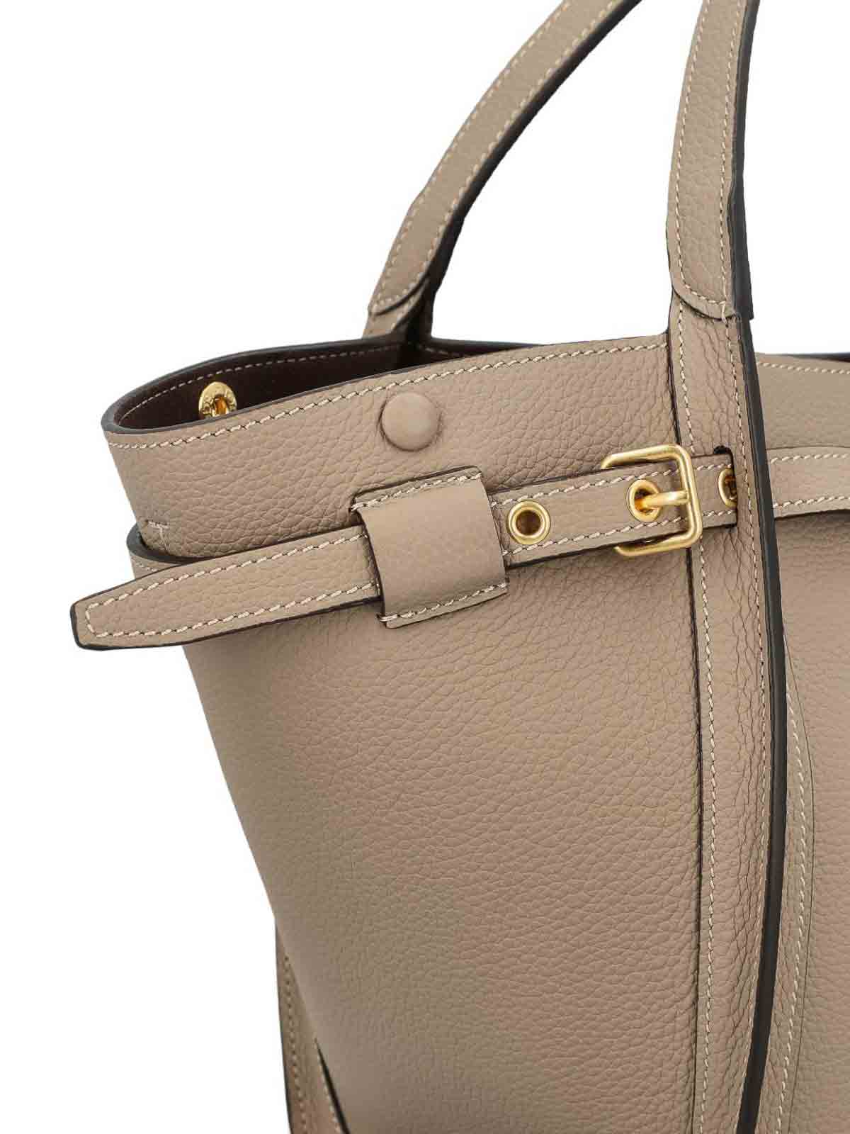 Braune goldfarbene Beschläge an der Oberseite des Griffs, oberer Reißverschluss, Schnallendetail, interne Einschubtasche
