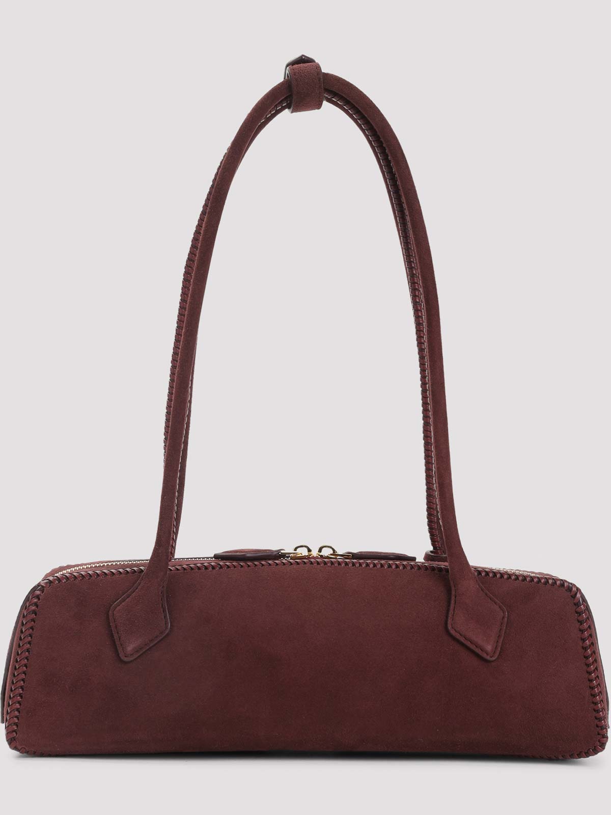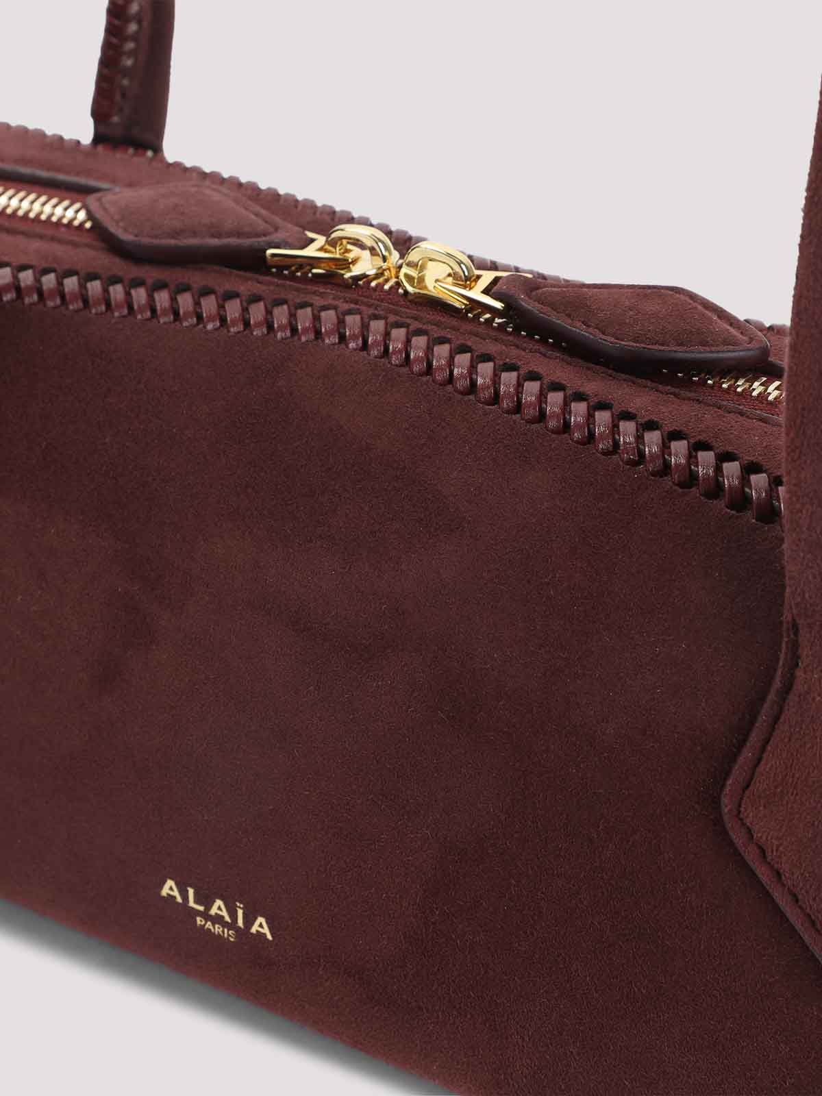 Alaa Mittelgroße, teckelrote Handtasche, gefertigt aus dunkelroten, getönten Metallteilen, Tragegriff, abnehmbarer Mini-Spiegel mit abnehmbarem Markenlogo, 2-Wege-Reißverschluss, abnehmbarer Mini-Spiegel und gefüttertes Einsteckfach